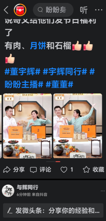 盼盼听说董董有秋月梨,立刻瞪起眼睛来[来看我] 与辉同行中秋福利早发到员工手里了, 直播间盼盼董董交接班,董顺便问盼盼,秋月梨吃了吗? 盼盼立刻问[笑哭]你有秋月梨? 董董说你没有吗?是不是你吃了啦? 这盼盼可急了,你有秋月梨? 董董连忙说,啊,不是,没有[捂脸] 董董这不走心的话, 盼盼是非常认真的, 这许五顿是白叫的吗[笑哭] 董董差点给宇辉惹事[祝福] 盼盼有二件事最重要 一个是吃,吃嘛嘛香, 一个是姐夫,提起姐夫心花怒放[赞] 这工作氛围,就像家里几个孩子一样,因为吃东西,得找家长评论[大笑]