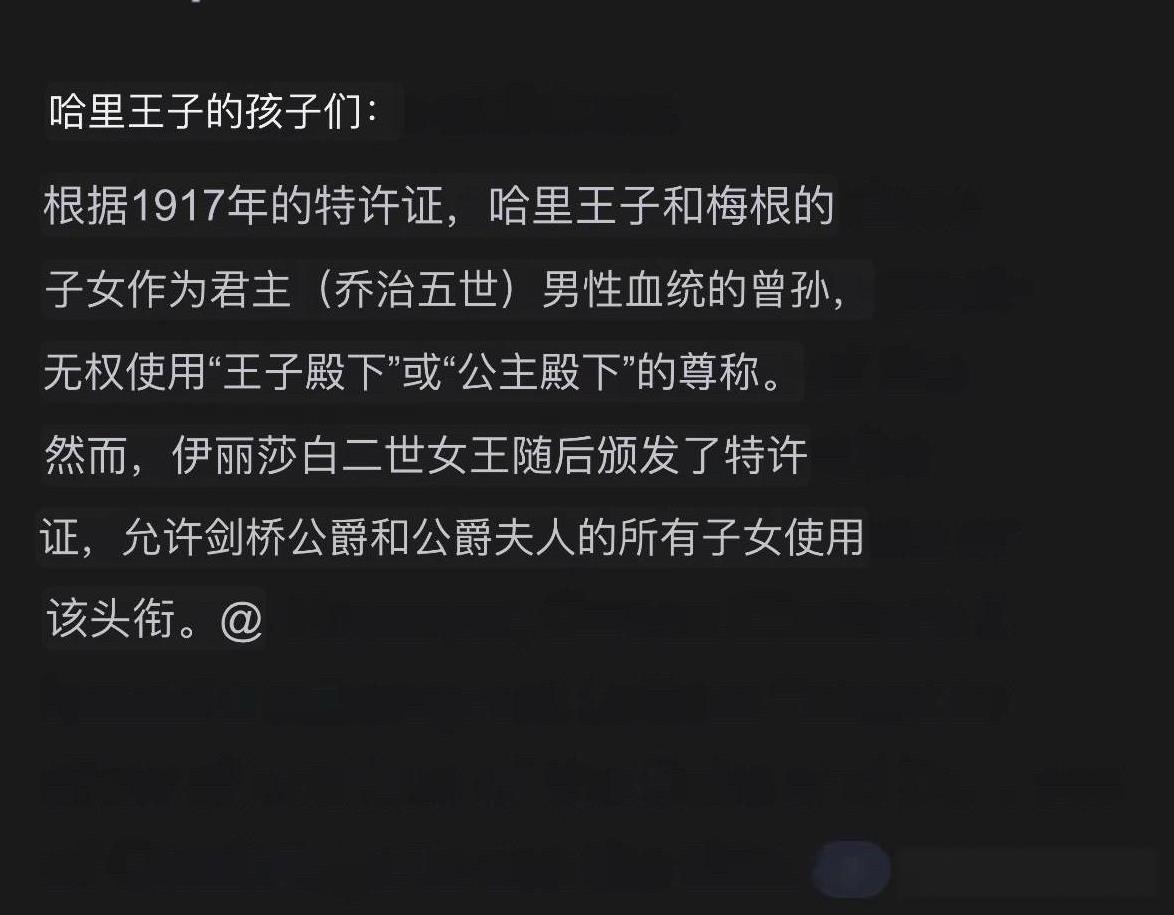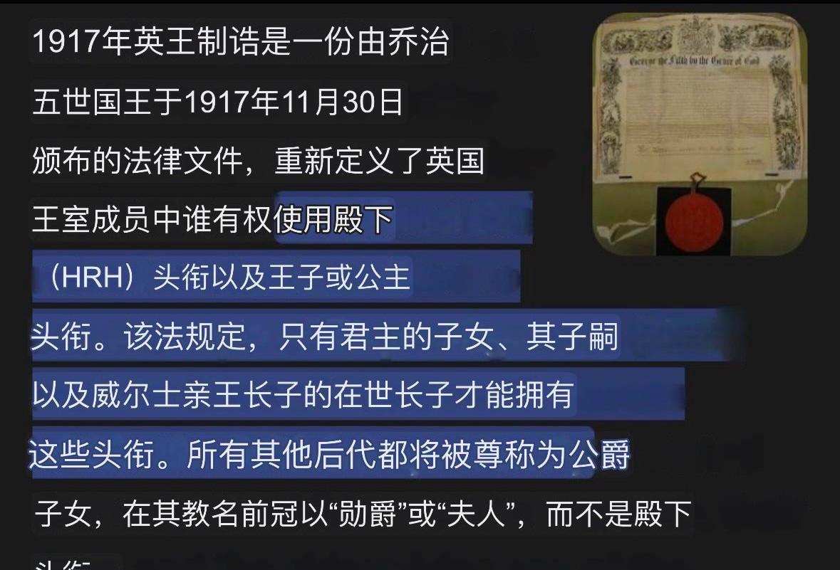 在头衔门这件事上,哈里梅根 觉得委屈,因为阿奇出生时没立刻封王子,而夏洛特和路易却有。但这是双标! 1917年规矩本就只授予继承人的长子(乔治)头衔。女王后来破例授予乔治的弟妹,是因情有理—— 想象一下,未来国王的子女中,只有老大是殿下,弟妹却什么都不是?这显然不合适。 可哈里并非继承人,情况完全不同!哈里夫妇却硬要同等待遇,还把这私心美化为“规矩”。事实上,阿奇本可沿用其父亲的次要头衔(如敦巴顿伯爵或阿奇勋爵),但他们看不上,非要“殿下”头衔不可。 甚至连等查尔斯继位后自动获封都嫌不够!梅根还谎称王子头衔自带安保。一切源于哈里的病态嫉妒和戴安娜当年模糊了长幼尊卑的养育方式。