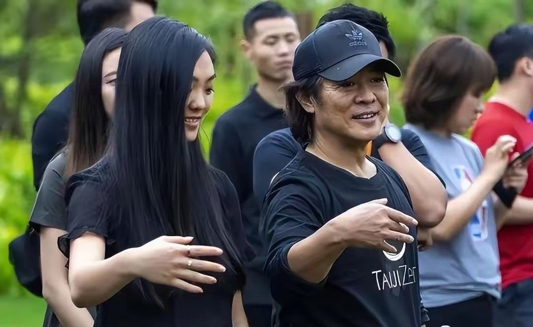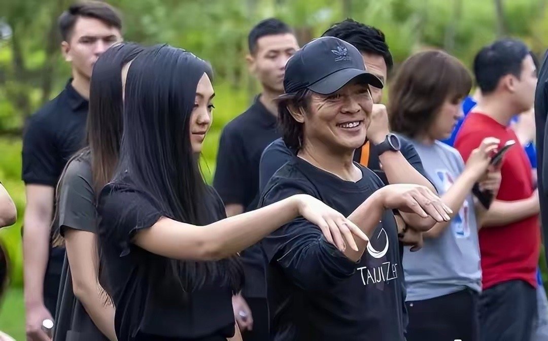 李连杰这是在教女儿练太极,父女俩长的太像了。尤其一笑那个神态。