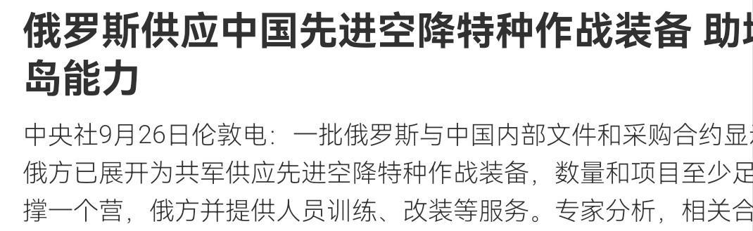 法媒声称,俄罗斯已经供应中国先进空降特种作战装备,以帮助中国增强夺岛作战能力!
