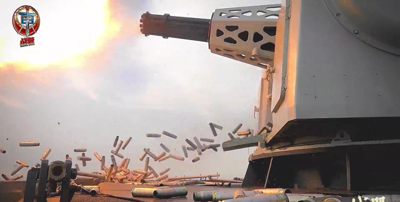 075两栖攻击舰海红旗-10防空导弹和1130近防炮开火的画面,海红旗-10的射界还是很开阔的,每艘075配置2座22联海红旗-10防空导弹发射器和2座1130近防炮,防御圈大约10公里。不过075也只有这两种主动防空手段,只是应付最终的绝对威胁,中远程防空更多的是依赖护航编队的大型战斗舰。