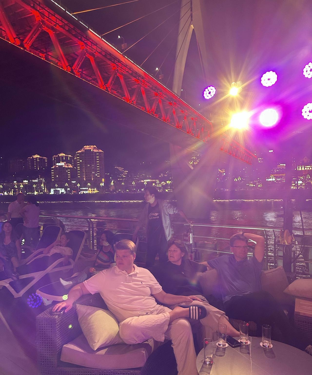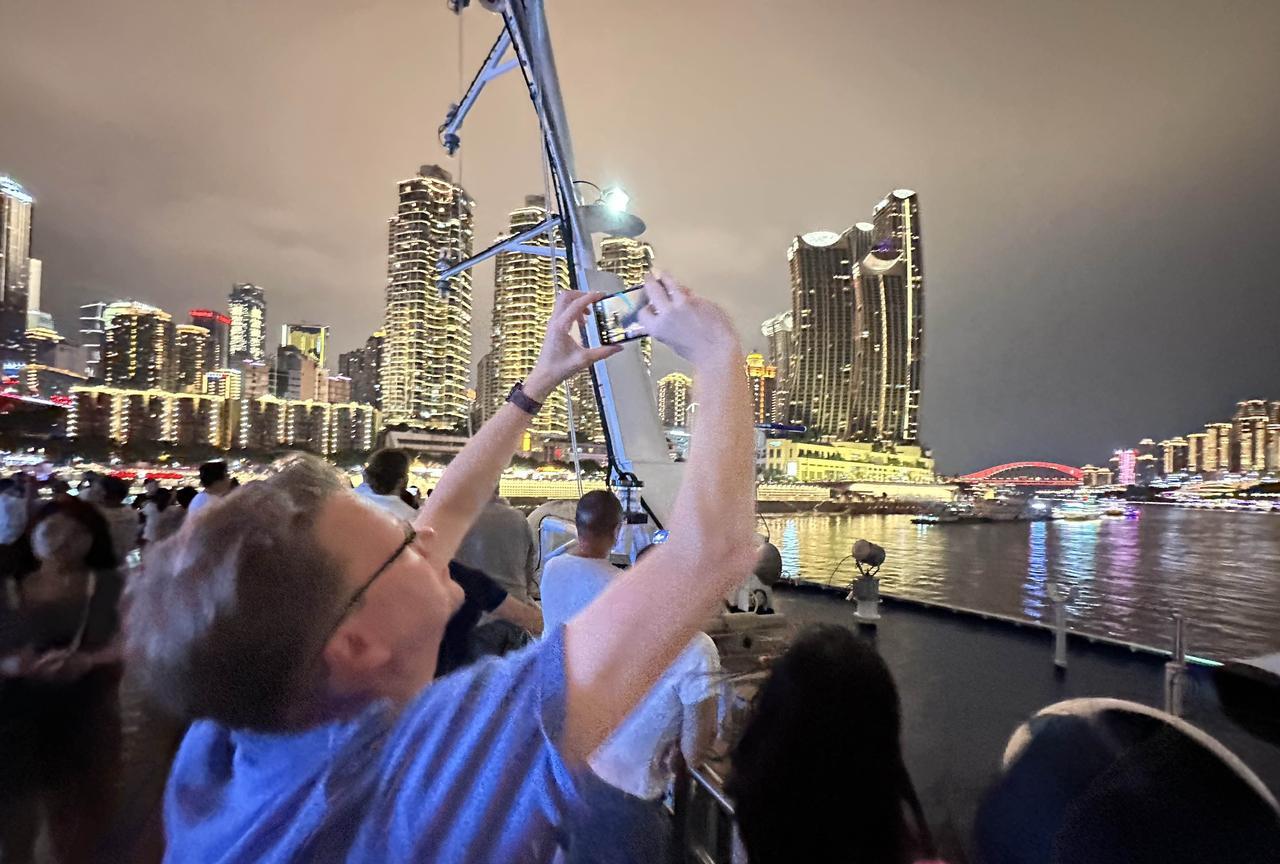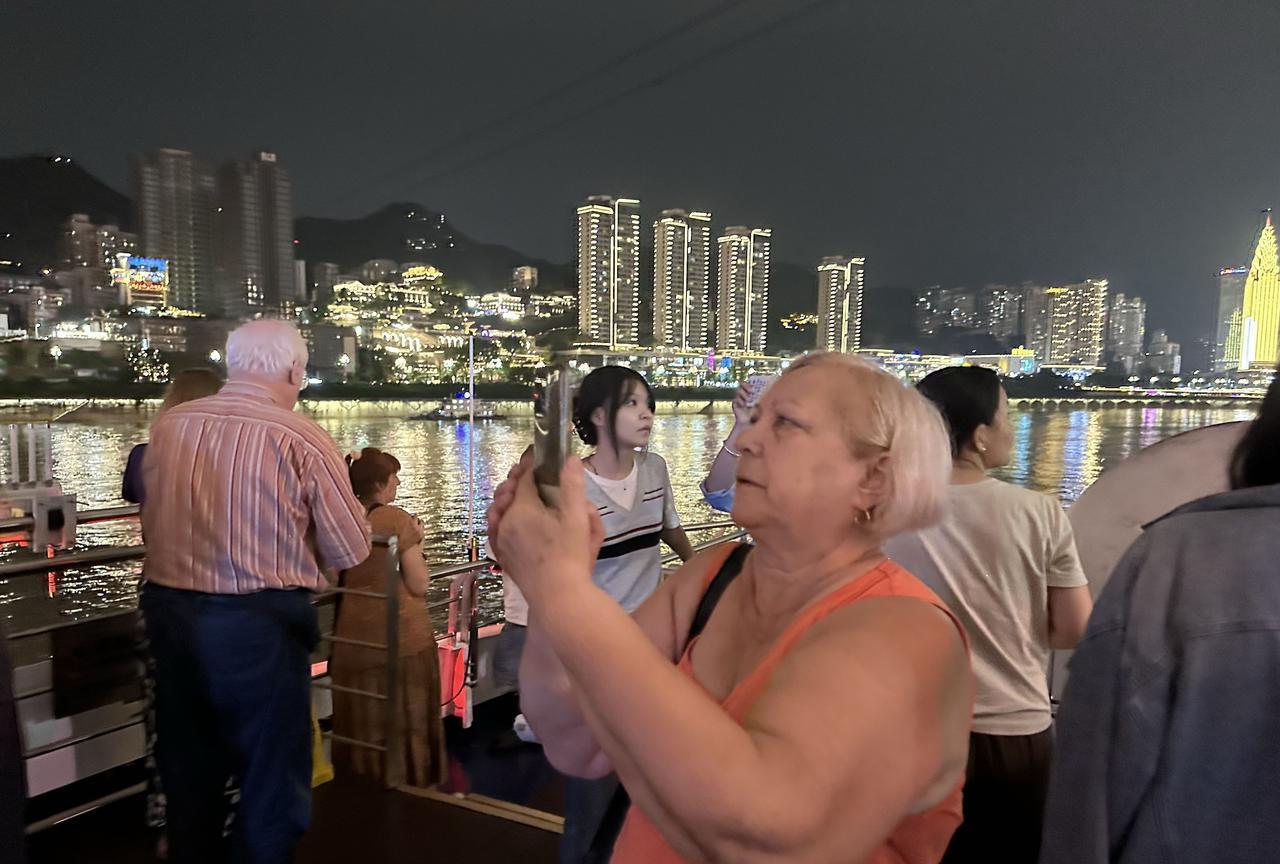 9月28日晚上9点,世界最大最先进的内河航运客轮—美维凯旋号首航仪式,吸引了来自全球各地的游客,重庆的国际化程度又迈出了一大步!这艘17000吨的电动推进豪华游船,技术先进,噪音和振动几乎没有,柴油烟气味完全没有,很是环保,乘坐体验也很安静舒适,综合平稳体验酷似高铁商务一等座。 这是长江上唯一的一艘有外籍管理人员常驻的国际化游轮,这也是长江上第一艘安装了电动扶梯的客船。这艘船,创造了很多个中国第一,世界第一! 2025年,重庆的外国游客数量出现了爆炸式增长,重庆街头和各大景点的外国人越来越稀松平常,长江游轮也迎来新的黄金时代,世界对于长江游轮的升级有了迫切的需要! 美维凯旋号正好踩准了风口,做为新一代环保舒适高科技示范游轮,将会成为高端三峡旅游的热门首选,将会更好满足国际旅客的高标准需求! 美维凯旋号提供双语服务和双语广播,船上有很多外国游客,所以也吸引了很多中国家长和孩子,在这艘船上,大家就像是生活在地球村或者国际空间站,年轻的船员们就像是在联合国工作一样,多元化的文化交流,让每一个人都收获满满,这正是很多家长带小孩来乘坐体验的意外惊喜。 今天晚上,美维凯旋号已经顺利驶离重庆朝天门港,安静,平稳,舒适,如履平地的行驶和乘坐体验让大家非常满意。 #光线摄影世界曾兰谈天说地#