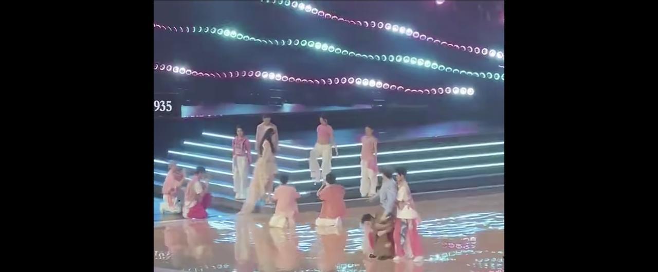 小沈阳刚唱完《大海》“请全部带走~~”,刚想陶醉一下听掌声,就响起了《美美Sunday》的前奏,他回头一看,女儿带着一群小伙子小姑娘气势汹汹地上台了,几个男孩一人抬腿,一人抬手,就把小沈阳架下了舞台。沈佳润不顾她爹就唱起歌来,小姑娘们开开心心地伴舞……