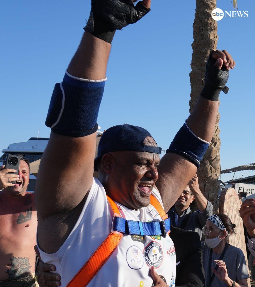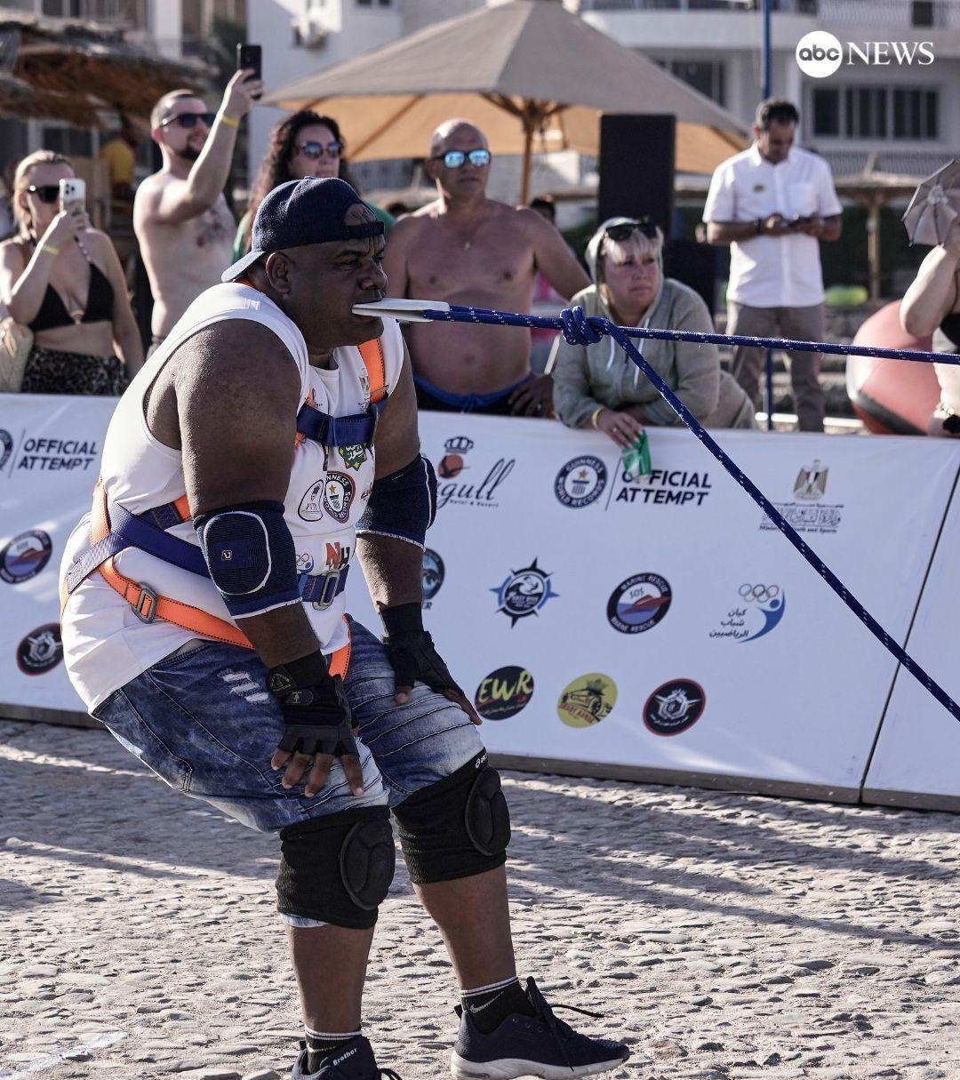 牛人! 当地时间周六,一位广受欢迎的埃及摔跤手凭借着勇气、肌肉和钢铁般的下巴,准备迎接一项非凡的挑战并打破世界纪录:仅用牙齿咬住一根绳子,将一艘 700 吨重的船拉过水面。 Ashraf Mahrous在挑战后在埃及红海度假胜地赫尔格达接受采访时说:“今天,我打破了世界纪录。” 这并不是一件容易的事,但Ashraf Mahrous,也被称绰号Kabonga,以前以他惊人的力量令人眼花缭乱。今年早些时候,他拉了一列火车。他还单枪匹马地拉了一辆机车,四年前还拉了一辆卡车。 随着每一次成就,他的人气都飙升了——孩子们在街上追着他跑,在那里他被称为“强者”。 随着这艘船的拉动,44岁的港口城市伊斯马利亚人Mahrous希望再次获得吉尼斯世界纪录的认可。 场景设定在周六的洪加达海岸。Mahrous首先拉了一艘700吨的船,为了肯定他的挑战,他拉了两艘重约1150吨的船。 Mahrous说:“感谢上帝,我把他们俩都拉了出来,向我的朋友和整个世界证明,上帝祝福了我,成为世界上最强壮的人。” 他说,目前的吉尼斯世界纪录是2018年创下的614吨重的船只。 Mahrous表示,他将发送他尝试给吉尼斯世界纪录的视频和照片进行评估。 为了准备这一壮举,Mahrous遵循富含蛋白质和铁的饮食,每天至少吃一打鸡蛋、两只整只鸡和5公斤(11磅)的鱼——同时每天训练三次两个小时。 这不是他第一次拉船。六年前,他尝试了两个小时,才设法将一艘4000吨的船拉入水中,绳子绑在肩上,大约30米(码)。事件被录下。 他最近在开罗的当地健身房对美联社说:“我拉船时咕哝着大喊大叫,我对着它说'今天要么是我,要么是你'”他每天在那里训练的当地健身房。 Mahrous认为,与他事先拉动的物体交谈有助于他建立联系,也是他成功的关键。他说:“对我来说,重要的是把我要拉的物体当作我身体的一部分,它随着我的心跳而移动。” Mahrous身高190厘米(6英尺3英寸),体重155公斤(341磅),他说他的力量很早就显现出来。 小时候,他会带着朋友玩乐,同时在手推车上拖着重物,几个气瓶。他9岁时,他的父亲失去了在伊拉克的承包商工作,在那之后,Mahrous开始敲门,提出为了一些现金而举起重物。 有一次,当他试图在朋友玩耍时拉他时,他不小心打断了朋友的胳膊。他帮助人们移动砖块、沙袋和其他重物——而且他速度很快。他热爱运动,训练功夫、跆拳道,甚至在开罗成立了一支摔跤队。 只有当他的朋友们看到他在体育馆的一个荒无人烟的院子里轻松地连续翻转了10次巨大的轮胎,只用一根手指推着一辆汽车时,他们才鼓励他创造世界纪录。 他说:“我受到那些打破记录的人的启发,觉得他们并不比我好。”现在他不再害怕受伤,而更担心无法完成拉动。 3月,他被吉尼斯世界纪录正式认可为最重的轨道拉动:他用牙齿固定的绳子拉动了一辆重达279吨的火车,距离近10米(33英尺)。当时,他还获得了另外两个证书,即最重的机车牵引和最快的100米公路车辆牵引。 Mahrous也是埃及职业摔跤手联合会的主席,此前在2021年6月因用牙齿拉动一辆重达15,730公斤的卡车而获得吉尼斯的认可。2024年2月,国际特许经营权认可他在30秒内破解并吃掉了11个生鸡蛋。 他在拉扯活动时戴着护齿,但他说他并不担心自己的牙齿。他没有去看牙医,而是使用miswak——一种传统的牙齿清洁树枝,富含抗菌化合物,有助于防止齲齿。 他说他不服用补充剂,但每天至少吃、睡和做两次工作。 他的野心远非结束。接下来,他计划向埃及总统发出请求,请求允许撤出一艘26.3万吨的潜艇。 他还希望有一天能只用他的眼睑肌肉拉飞机。