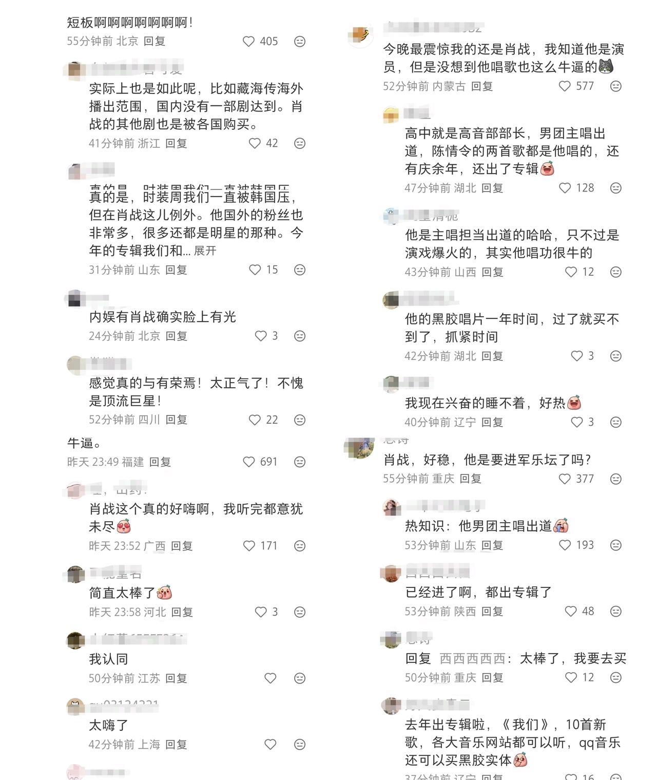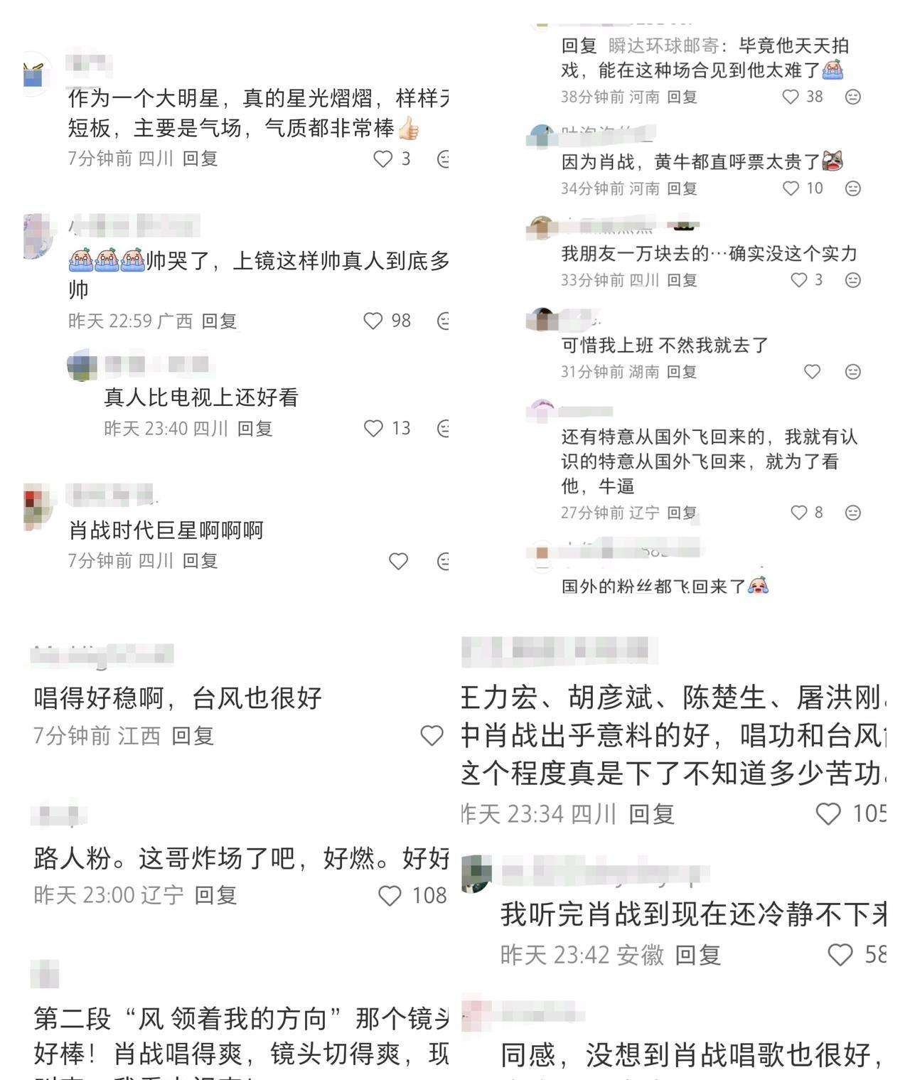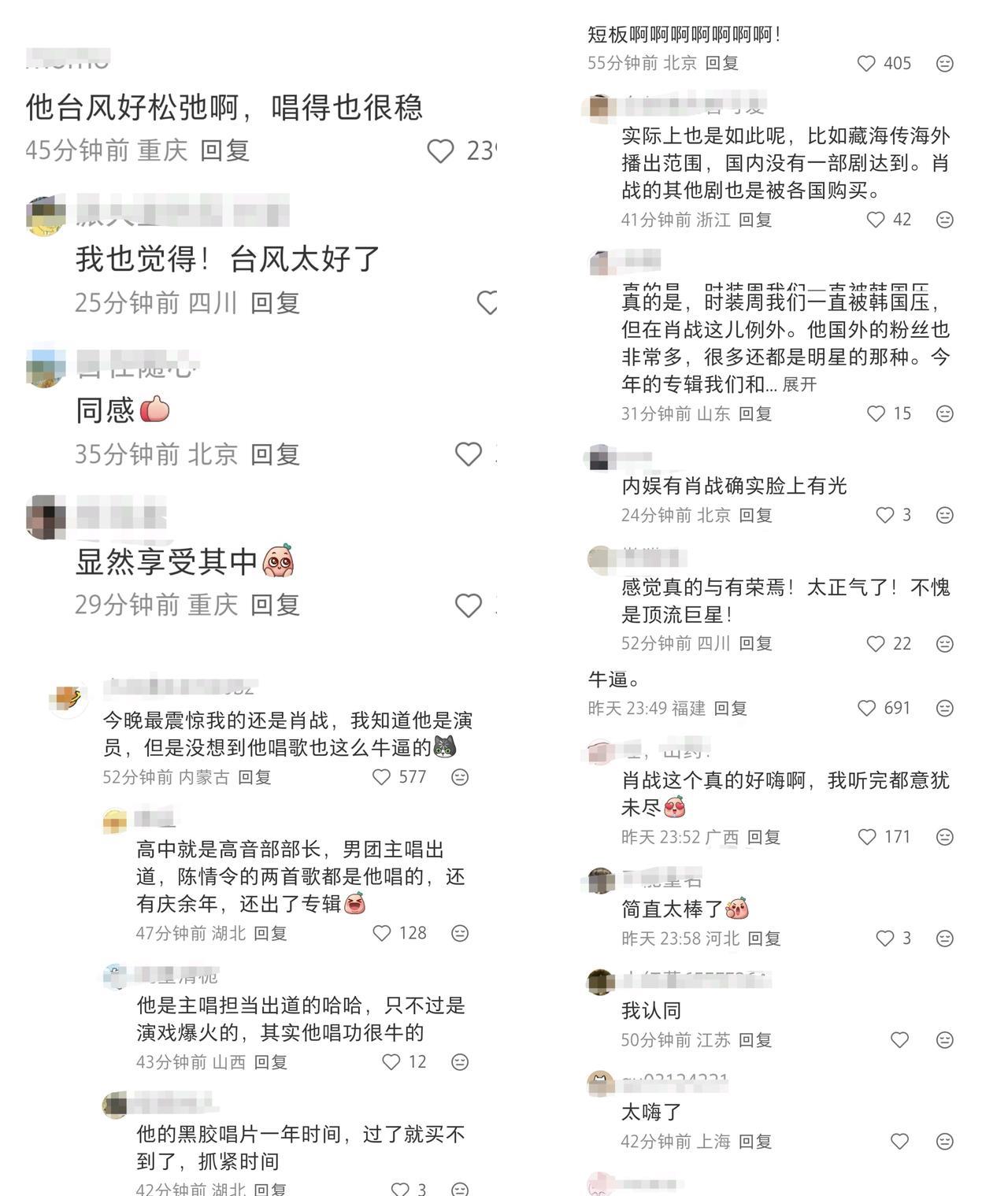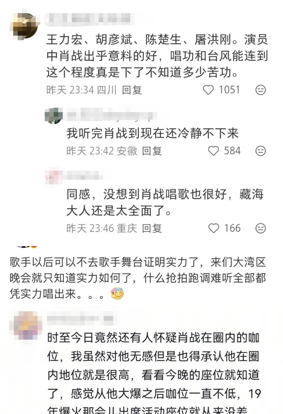 肖战《整晚的音乐》舞台,星光熠熠,好评如潮。昨晚看到肖战的节目就在想 这大概就是时代巨星了!90组艺人只有他能独唱!杨受成拿着荧光棒挥舞,最后举起相机拍满堂红。纵然见多识广,也不得不为巨星折服! 路人在山顶拍的全场视角:“好吓人好吓人好吓人,好可怕好可怕唉,天啊,太牛了,这个!”屋顶着火了是不! 再次回顾2020那八秒红海,那一夜,那八秒,是暗夜里攥紧的微光,是千万人瞒着世界的奔赴,每一片红海都写着“别怕”;2025这八秒,是湾区夜空下绽开的星河,是坦荡舞台上无需言说的呼应,每一束红光都亮着“我们还在”。 肖战这首《整晚的音乐》,这次这首编曲在整台晚会中显得比较出挑,乐队同台,Band Sound氛围感拉满。他的起始音拉得挺高,这个音域不好处理,那首歌可是五星难度,调子特别扭七拐八的! 但在整晚对歌手不算太友好的音响环境中肖战的高音稳定和律动控制都相当不错,明亮的音色既有辨识度,还在动态中有很强的控制力,很稳,有些很顶但依然有余力的游刃有余感,“不愧是喊出命不该绝的人,中气这个足啊!” “老牌歌手就不用说了,特别意外的是肖战,燃爆了,超稳的,整个场面都嗨起来了,原来藏海大人还能唱摇滚。” 歌手以后可以不去歌手舞台证明实力了,来们大湾区晚会就只知道实力如何了,什么抢拍跑调难听全部都凭实力唱出来。实话,大湾区晚会是检验歌手的好舞台!