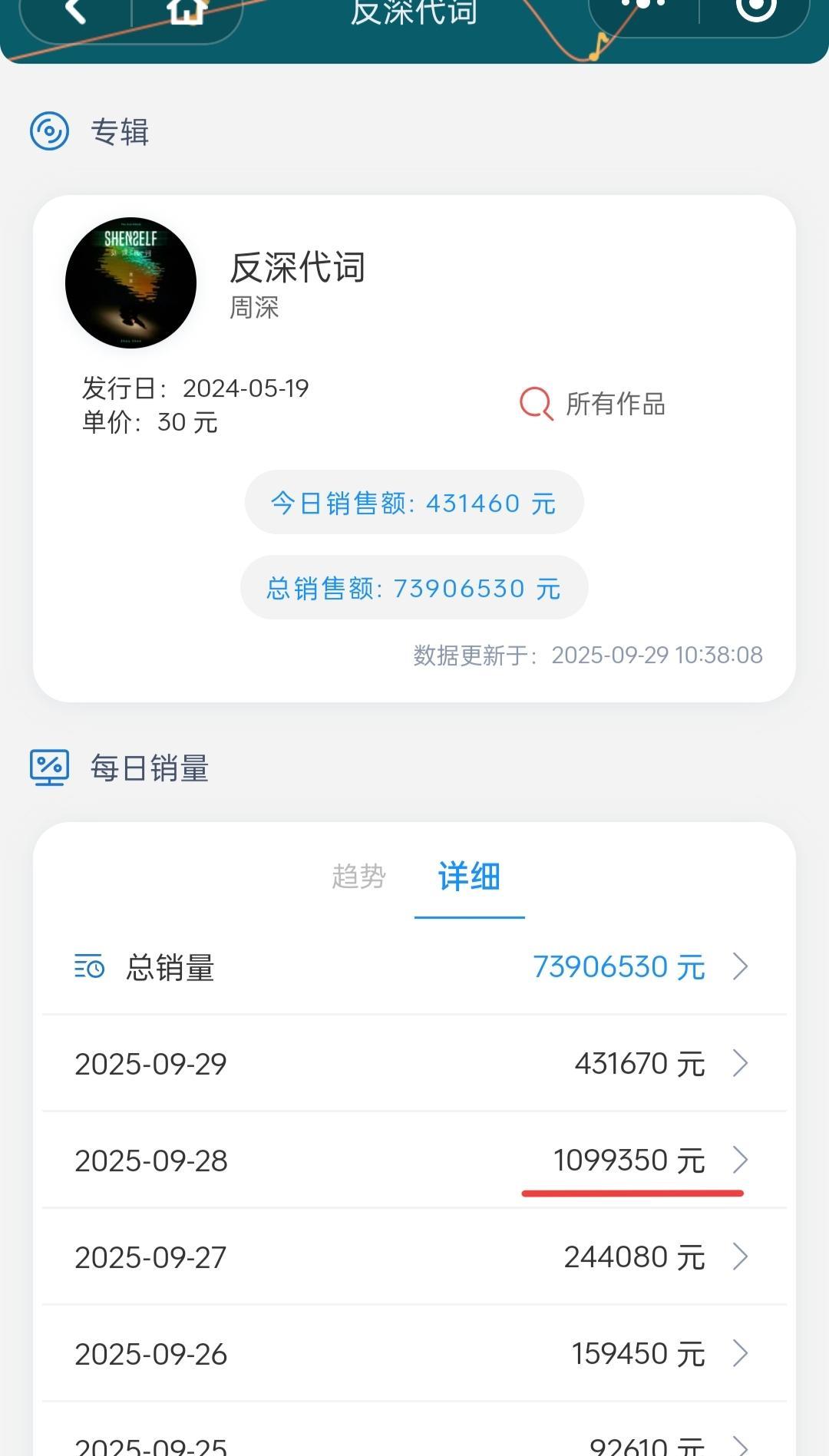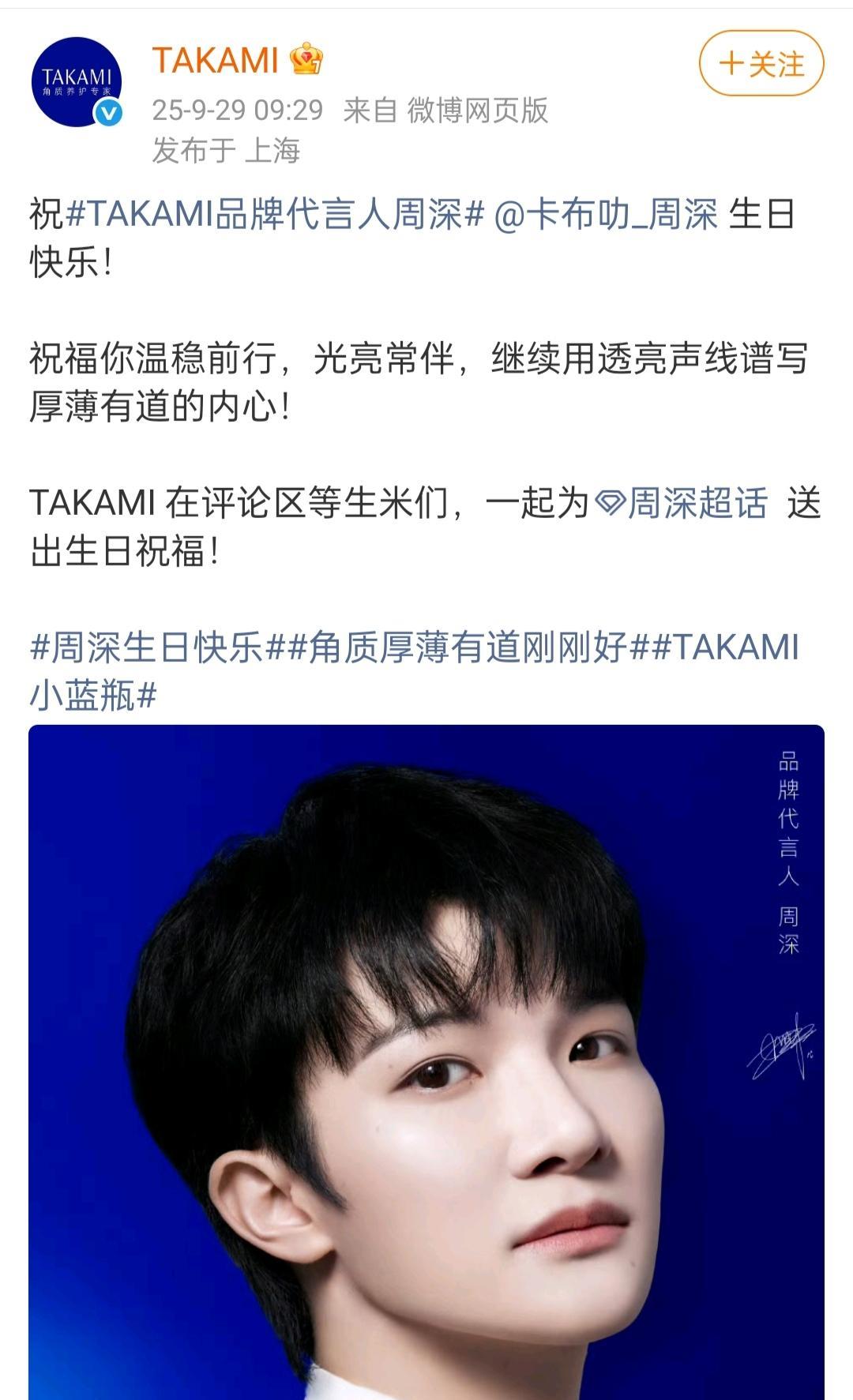 周深生日,各合作方送上祝福! 京都念慈菴,康师傅老母鸡汤,IPSA,云南白药,TAKAMI ,小王都卡上点了09:29,不错,能处[呲牙] 还有一些合作的地方台也发了! 看图三,昨天生米们把二专直接干到了100多W,差一点点110W了![震惊],太有实力了! #周深#