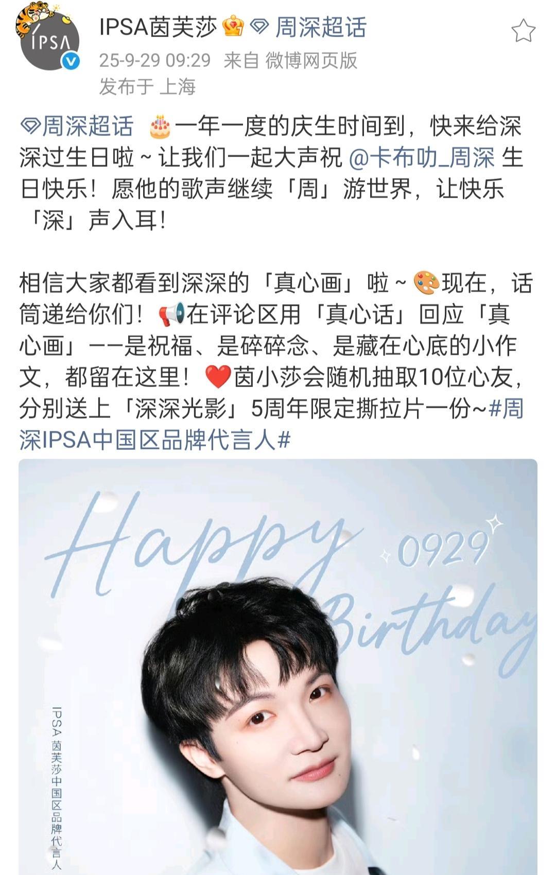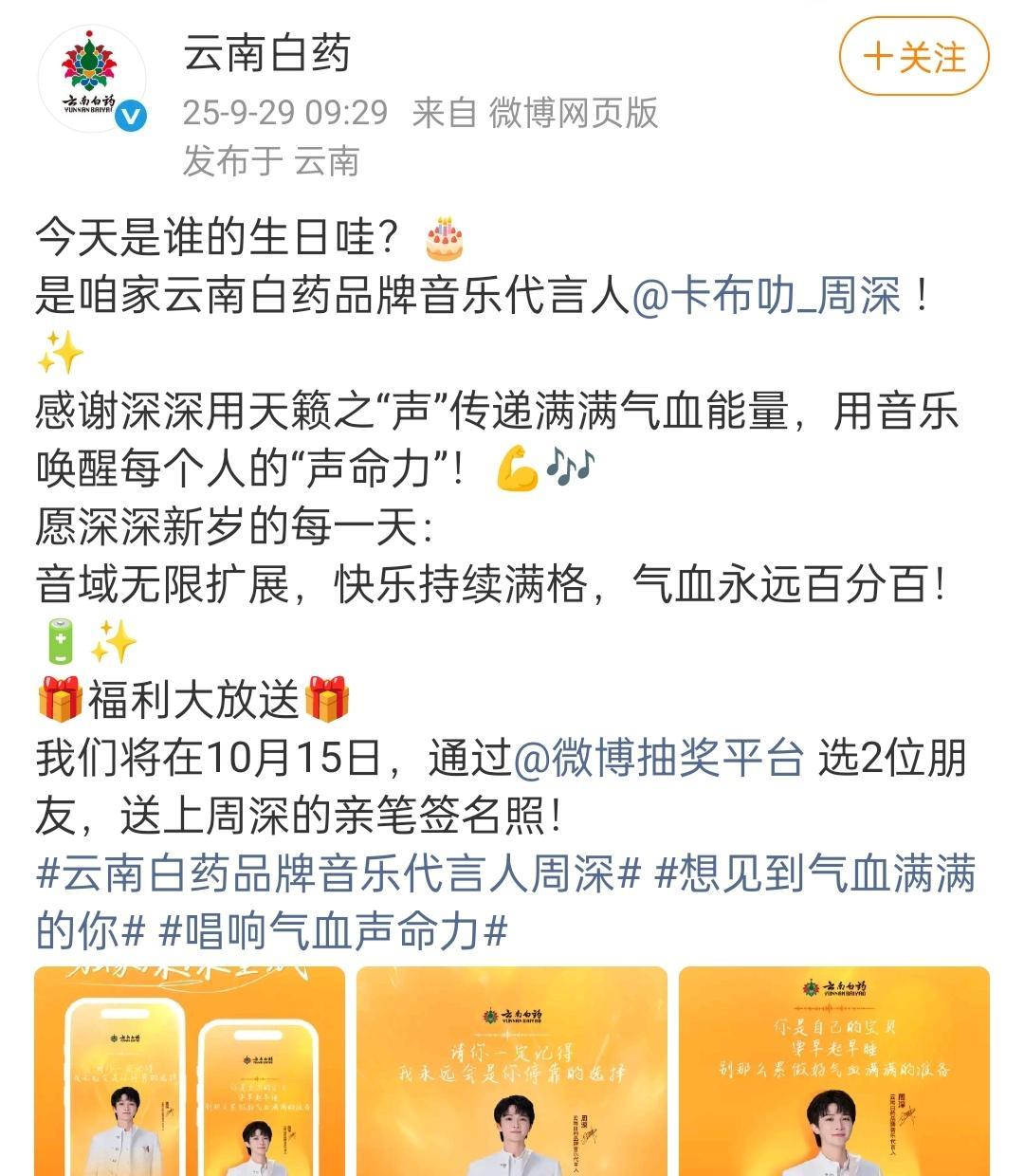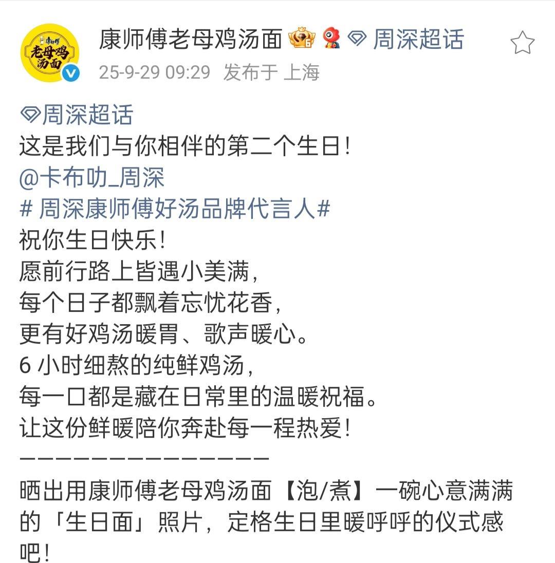 周深生日,各合作方送上祝福! 京都念慈菴,康师傅老母鸡汤,IPSA,云南白药,T