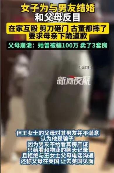 河南郑州,31岁女子,想找高富帅,被骗了100万,卖了3套房,但她还没有醒悟过来,又谈了一个25岁的男朋友,3个月就花了二十几万,现在怀孕了,她又要给男友30万嫁妆,男友说会给她60万彩礼,女子父母怀疑这是骗婚,就不再给钱,结果女子和母亲互殴,她还剪刀砸门,摔古董,还说要母亲向她下跪道歉。 王女士怀孕了,她高兴地将这个消息告诉男朋友,男朋友就和她谈婚论嫁,让她先给30万嫁妆,然后他会再转60万彩礼。 一看男友要和她结婚了,她终于找到帅帅的,坏坏的丈夫了,她兴奋地回家,她要将这个好消息告诉父母,让他们给30万。 可这一次,父母却一眼看出,自己的女儿可能又遭遇了骗婚,他们这一次说什么也不再拿钱出来。 说起王女士的事情,她的父母真的是太操心了,王女士就是一个恋爱脑,还公主病,从小被惯坏了,以至于现在,还想找比自己小6岁的男朋友,她还以为自己找到了高富帅。 他们女儿所做的事情,没有一样是让他们放心的。 就在半年前,王女士就被骗了100万,都是在找高富帅的路上,被别人给骗走的,为此她卖了3套房子,现在都变成穷光蛋了,她还是没有醒悟,既然还要找那种帅帅的,坏坏的男朋友。 现在谈的这个男朋友,也才半年时间,就花了30万,因为恋爱三个月,她就给对方买了一辆20多万的车。 现在怀孕了,没钱了,又回来问父母要钱了,这一次要的竟然是30万,她要这30万做嫁妆。 父母一听,当然觉得这事情不对劲,哪里有先给嫁妆,然后再给彩礼的,更何况王女士父母连男方的父母都没有见过。 一开始的时候,王女士一回家看到父母污蔑自己的男友是骗婚,她就气得说要让母亲下跪跟她道歉。 一家三口,因为这30万的嫁妆,王女士和母亲互殴了起来,她和母亲互殴之后,两人身上满是伤,王女士见目的还没有达到,又拿起剪刀一直砸门。 她还将父母珍藏的古董拿了出来,摔碎了,看着自己娇生惯养31年的女儿,竟然变得如此不可理喻,王女士的父母才意识到他们惯子如杀子。 可现在能怎么办呢,女儿已经长大,她终究是要嫁人的,但现在她要嫁的这个男朋友,实在难以让做父母的放心。 父母和王女士沟通不了,他们看着女儿撒泼打滚,在家大喊大叫,非得父母给钱,她要拿这30万给男友,跟男友出国,去跟国外婆婆一起生活。 父母看着女儿已经无法沟通了,他们只好了找来了调解员。 面对调解员的到来,王女士的父母非常无奈,他们说他们今年已经给了70多万给女儿了,女儿都花在找男朋友的路上,现在他们的女儿明显是被骗了,可女儿却没有醒悟过来。 王女士一看父母又在污蔑他的男友是骗婚,气得当着调解员的面,又大喊大叫起来,她跟调解员说,像她这样嗲嗲的女孩,要让她跟父母介绍的电工结婚,那是不可能的,电工配不上她,她就喜欢那种坏坏的,看起来像大哥一样的,在外一看就像坏人,能够保护她的男朋友。 看着这个迷途不知返的女孩,看着她对着父母大喊大叫,调解员也是当面指责她,做人要有良心,不要吃着父母的饭,花着父母的钱,还要骂父母。 后来在调解员的帮助下,王女士的父母允许王女士一个人出国,和她婆婆生活,但是不能带嫁妆和一分钱。 或许父母也想通了,他们不可能保护女儿一辈子,也是时候让女儿出去吃吃苦头,方能理解做父母的一片苦心。 那么怎么看待王女士遇到的这件事呢? 首先,王女士的父母怀疑王女士的男朋友是骗婚,如果是骗婚,对方就构成了诈骗罪。 《刑法》第266条规定:诈骗公私财物,数额较大的,处三年以下有期徒刑、拘役或者管制,并处或者单处罚金;数额巨大或者有其他严重情节的,处三年以上十年以下有期徒刑,并处罚金;数额特别巨大或者有其他特别严重情节的,处十年以上有期徒刑或者无期徒刑,并处罚金或者没收财产。 其实王女士的男朋友挺可疑的,王女士和他谈婚论嫁,他不但让王女士先给30万,再转60万彩礼,他更是没有安排自己的父母和王女士的父母见面,王女士的父母打语音给他,他也不接,打给他的父母同样也不接,这真的很可疑。 其次,王女士的父母太过于溺爱王女士,导致她不懂感恩,还打父母,骂父母,这些都不利于家风建设。 《民法典》第1043条规定:家庭应当树立优良家风,弘扬家庭美德,重视家庭文明建设。 作为父母,从小就应该教子女独立,有辨别是非能力,子女长大之后才不会被骗。 那么你觉得王女士是遭遇了骗婚了吗?#头号创作者激励计划#