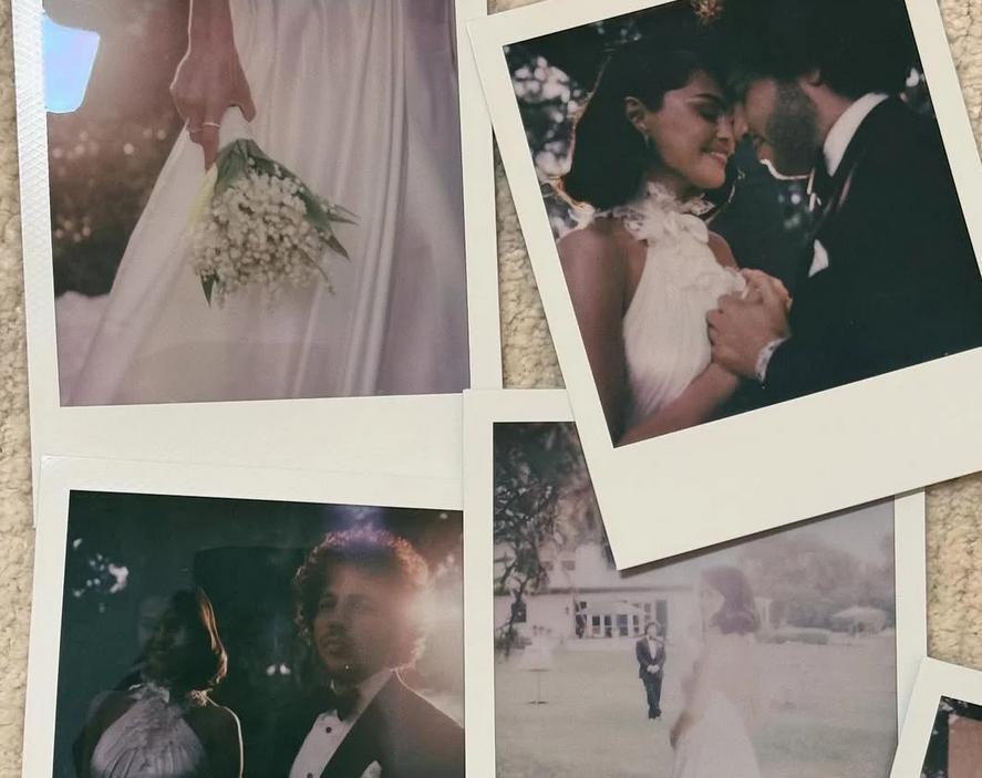 赛琳娜Selena Gomez晒出了她与爱人的结婚照片,她笑得很开心!