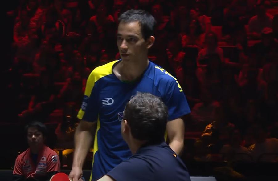 突发!雨果拍子貌似坏了! 他先和对手大登沟通, 大登陪着他去找副裁判, 又去找主裁判。 最后居然把这一分给找回来了。 从这一点看, 大登这人,人品咱不知道, 球品还挺不错, 不是自己的分不要。 最后大登复仇失败, 1:3输给了雨果,