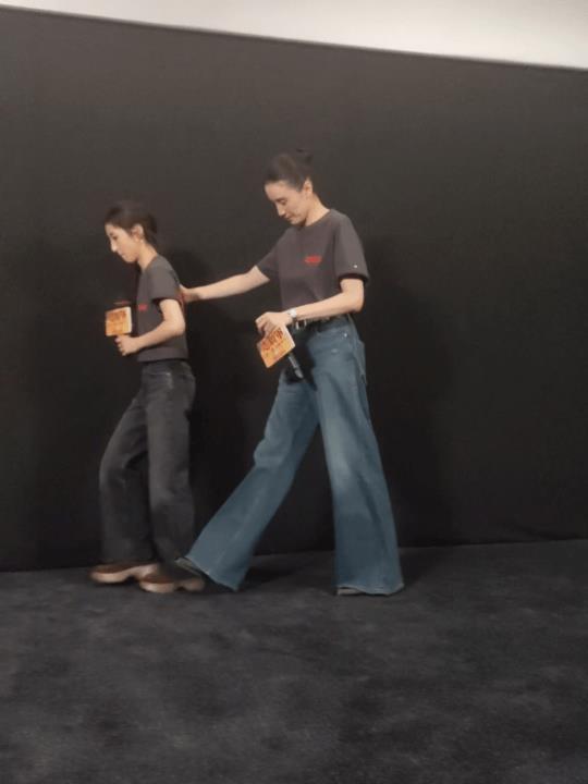 最近宋佳和张子枫一起宣传新片,两位搭配的都很简洁,不过站在一起特别的有姐妹范儿。 宋佳上身穿灰色短袖T恤,下身搭配蓝色牛仔裤,凸显出了很好的身材比例。 宋佳脚踩黑色皮鞋,还特意把头发挽了起来,尽显优雅之美。 她把张子枫张妹妹来对待,不得不说宋佳确实是个很和善的人。 张子枫用灰色T恤搭配灰色牛仔裤,还绑着漂亮的大麻花辫,像个清纯的美少女。