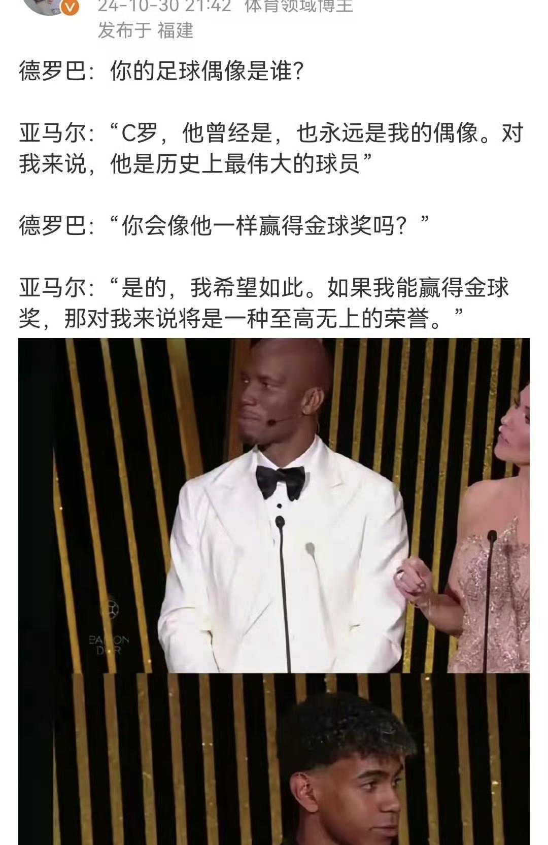 连续两年,虽然亚马尔获得科帕奖,但C罗都没有参与投票,也就没有给亚马尔任何助力。而梅西这两年都给亚马尔投了票,每次都是第一顺位。 这是赤裸裸的颠倒黑白、倒反天罡。