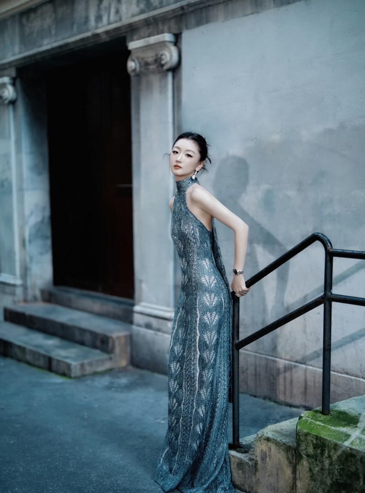 周冬雨也能驾驭这么御姐的造型! 一身银灰高定礼服,挂脖设计露背杀,亮片刺绣在镜头前闪到犯规。丸子头配钻石耳坠,手腕上的腕表精致感拉满,在海边和老街的背景里,又灵又飒的反差感绝了!#周冬雨# #米兰时装周#