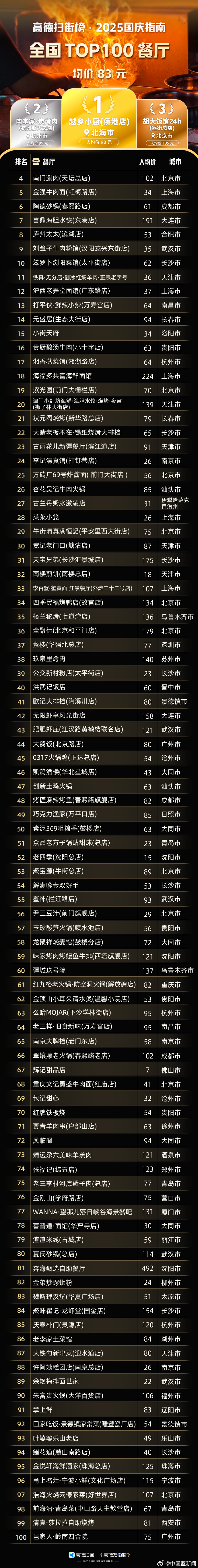 挑战全网网友,不服来辩! 不装了,摊牌了,高德发布的这一份高德扫街榜全国top100 美食餐厅,我吃过15家,各位友友,还有比我多的吗?