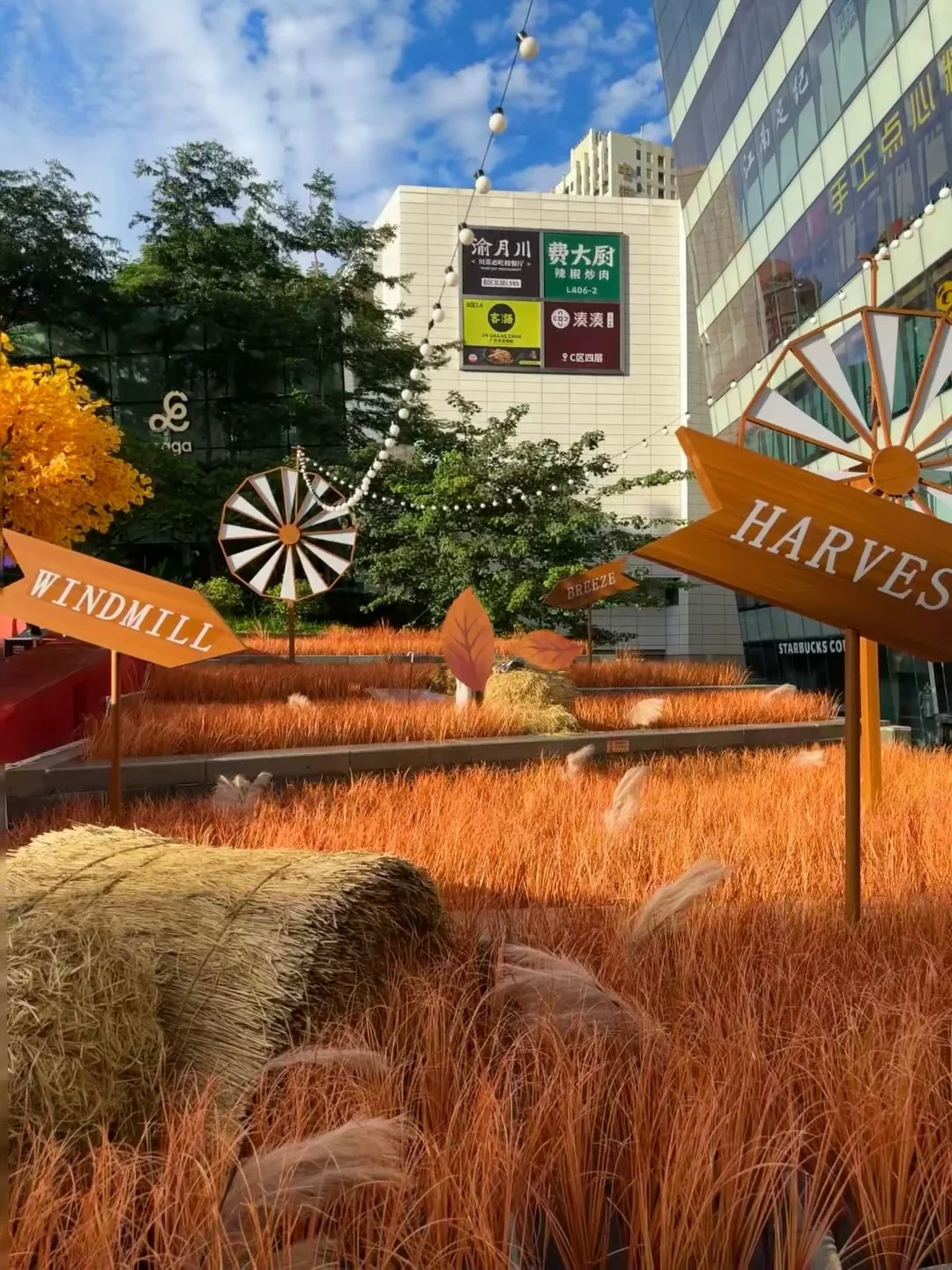 哇哇🤩还得是深圳速度呀 周六在华强北中航城遛娃喂鸽子 发现居然已经5G入秋了🍂 有童话小屋 下午四五点的阳光🔆像滤镜一样 童话小屋🍁麦田风车🪵稻田草垛 怎么拍都好好看呀~ 还有落叶🍂从天而降太有氛围了 孩子们都在忙着满地捡金灿灿的落叶🍂 也算是体验到秋天的快乐了😅