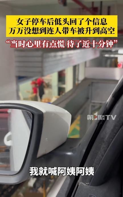 笑不活了!9月25日,浙江温州,一女子在车库停完车后,低头回了个信息,结果着急上厕所的工作人员直接按了按钮,把女子连人带车一起升到高空中!女子在上面待了大约10分钟,被路过的阿姨发现了,然后去找工作人员给放了下来。网友:那很崩溃了。 现在路上汽车的数量越来越多,商场、办公楼的停车位供不应求,为了满足更多人的需求,不少地方开始使用立体车位,原本停一辆车的空间,就能容纳两辆车了,非常的实用。 这天早上,蒋女士一如既往的开车去上班,停好车后,手机刚好收到了一条信息,她就先回消息了。 工作人员并没有注意到蒋女士没有下车,而他又刚好想上厕所,就启动了机器,把车子升了上去。 感受到车辆的晃动,蒋女士瞬间懵了,急忙大喊工作人员,可由于机器运行的声音太大,工作人员一点都没有听到,径直离开了。 在车上被困了近10分钟,蒋女士看到下面有几名阿姨,于是拼了命的大喊,终于被对方发现,好心的阿姨急忙去找了工作人员,这才把蒋女士放了下来。 网友看后表示,怎么能这么粗心,为什么被困在上面不打电话联系物业,果然人一着急就不知道怎么做好了。 信息来源:《女子在升降车位停车后,低头回了个信息没及时下车,万万没想到连人带车被升到高空。当事人:当时心里有点慌,在上面待了近十分钟,后来安全下到地面。》第1眼新闻