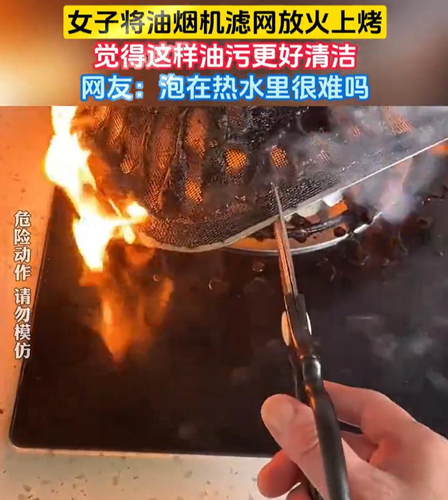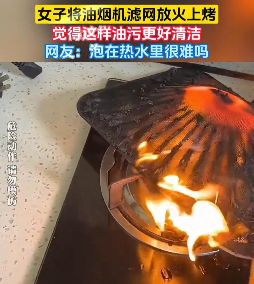 9月25日发布,女子在家里打扫卫生,看到油烟机里面的滤网上面都是油渍,刷起来又嫌麻烦,于是灵机一动,直接放到燃气上面用火烤,甚至还不忘发视频炫耀自己的聪明才智,网友:泡在热水里很难吗? 信源:来源于网络 谁没为洗油烟机滤网犯过愁?黑乎乎的油渍粘在网格上,钢丝球蹭半天都下不来,光想想都觉得累。 可最近有位女士的“省事招”,看完真让人捏把汗——她直接把满是油渍的滤网架在燃气灶上,开着火烤,还拍视频炫耀“又快又干净”,评论区里一半人急得喊“快关火”,一半人吐槽“泡热水很难吗?” 先说说视频里的画面有多揪心:金属滤网被火苗舔得通红,上面的油渍遇热“滋滋”响,化成油滴跟雨点似的往下溅,灶台上、瓷砖缝里全是油星子,屋里飘着一股呛人的焦糊味。 她还一边烤一边夸:“你看这油一烤就没了,比刷半天省事多了!”可镜头拉近了能看见,滤网边缘已经烤得变了形,原本规整的网格歪歪扭扭,跟被揉过的铁丝似的。 有人可能会问:不就是烤个滤网吗?至于这么紧张?还真至于。 油垢这东西本身就是易燃物,离明火这么近,一旦油滴溅到火上,火苗能瞬间窜起来——有个网友就分享自己的经历:“去年我也这么试,刚烤没两分钟,火苗‘噌’地窜到半米高,差点烧到橱柜,现在想想都后怕。” 就算当时没着火,金属滤网经不住高温折腾,烤几次就会变脆,拿的时候稍一用力就会碎,最后还是得换新的,反而比清洗花更多钱。 更麻烦的是“次生灾害”:烤化的油滴溅得到处都是,原本只需要洗滤网,现在连灶台、墙面都得擦,有的油滴渗进灶眼,还可能堵住燃气通道,下次用的时候有安全隐患。 有网友算过账:“一个新滤网才十几块,三个月换一次也花不了多少钱,何必冒险烤?万一真着火,厨房烧了可就不是几十块能解决的了。” 其实很多人都有过“图省事耍小聪明”的时刻,觉得“偶尔一次没事”,可生活里的安全隐患,往往就藏在这种“侥幸”里。 比如有人用烧碱兑开水洗滤网,结果烧碱腐蚀性太强,把滤网烧出窟窿;还有人嫌清洁剂贵,用汽油擦油渍,差点引火——这些看似“省事”的招,最后都得花更多时间收拾烂摊子。 说到底,清理滤网根本不用这么冒险,几个简单的法子就能搞定。最常用的就是“小苏打浸泡法”:烧一锅热水倒进盆里,加两大勺小苏打,把滤网放进去泡20分钟,拿出来用软毛刷一刷,油渍基本就掉光了,既不费力气,也不会伤滤网。 要是觉得泡着慢,喷点专门的油污清洁剂也行,选那种食品级的,喷完静置5分钟,再用清水冲,安全又干净。 实在嫌麻烦,还有个“懒人招”——直接换新的。现在网上买滤网特别便宜,拼多多上十几块钱能买十个,三个月换一次,每次换的时候把旧的扔了,新的装上就行,连洗的时间都省了。 有网友算过:“一个月花几块钱,不用跟油渍较劲,也不用担着火险,多划算。” 生活里的“省事”从来都不是“走极端”,像烤滤网这种操作,看着省了几分钟,其实是拿安全当赌注。 毕竟清理滤网再麻烦,也比着火、换滤网花的成本低;多泡一会儿热水,总比事后擦灶台、修橱柜省心。 下次再碰到洗滤网的难题,不妨试试这些安全招,别再跟明火“较劲”了——省事可以,但不能玩命啊!