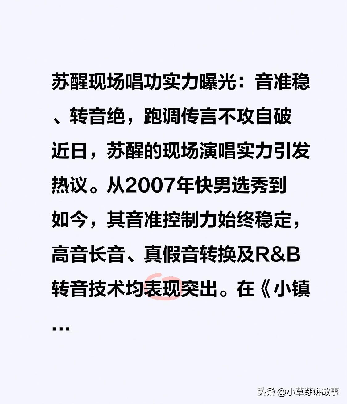 惊爆!苏醒现场唱功实力大揭秘:音准稳、转音妙,跑调传言不攻自破 近日,苏醒现场演