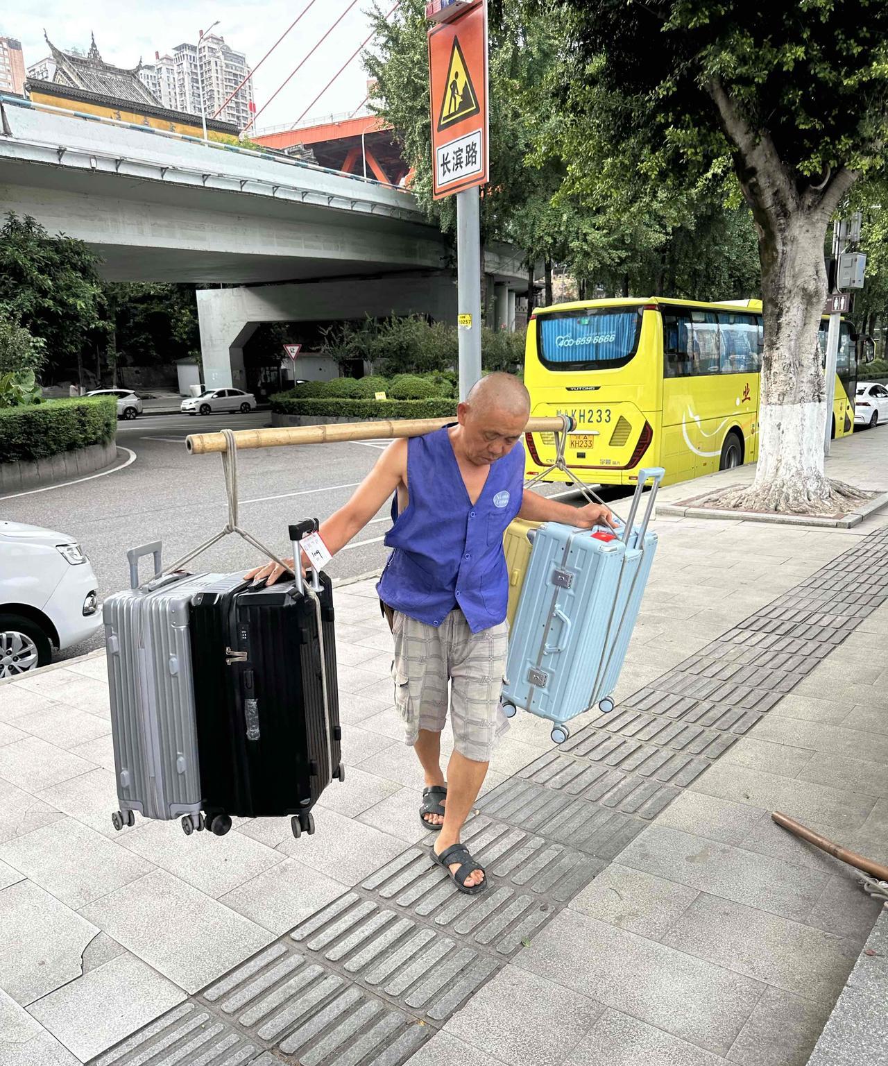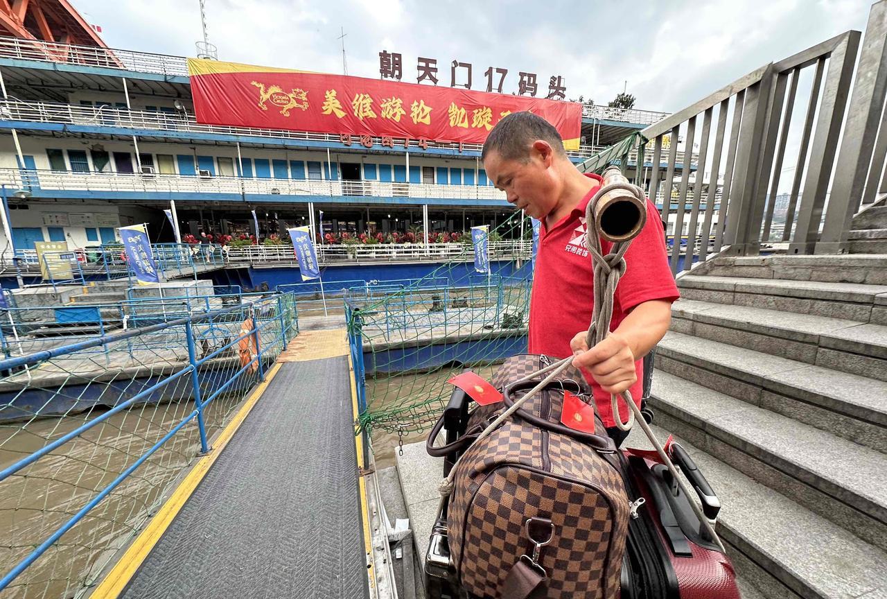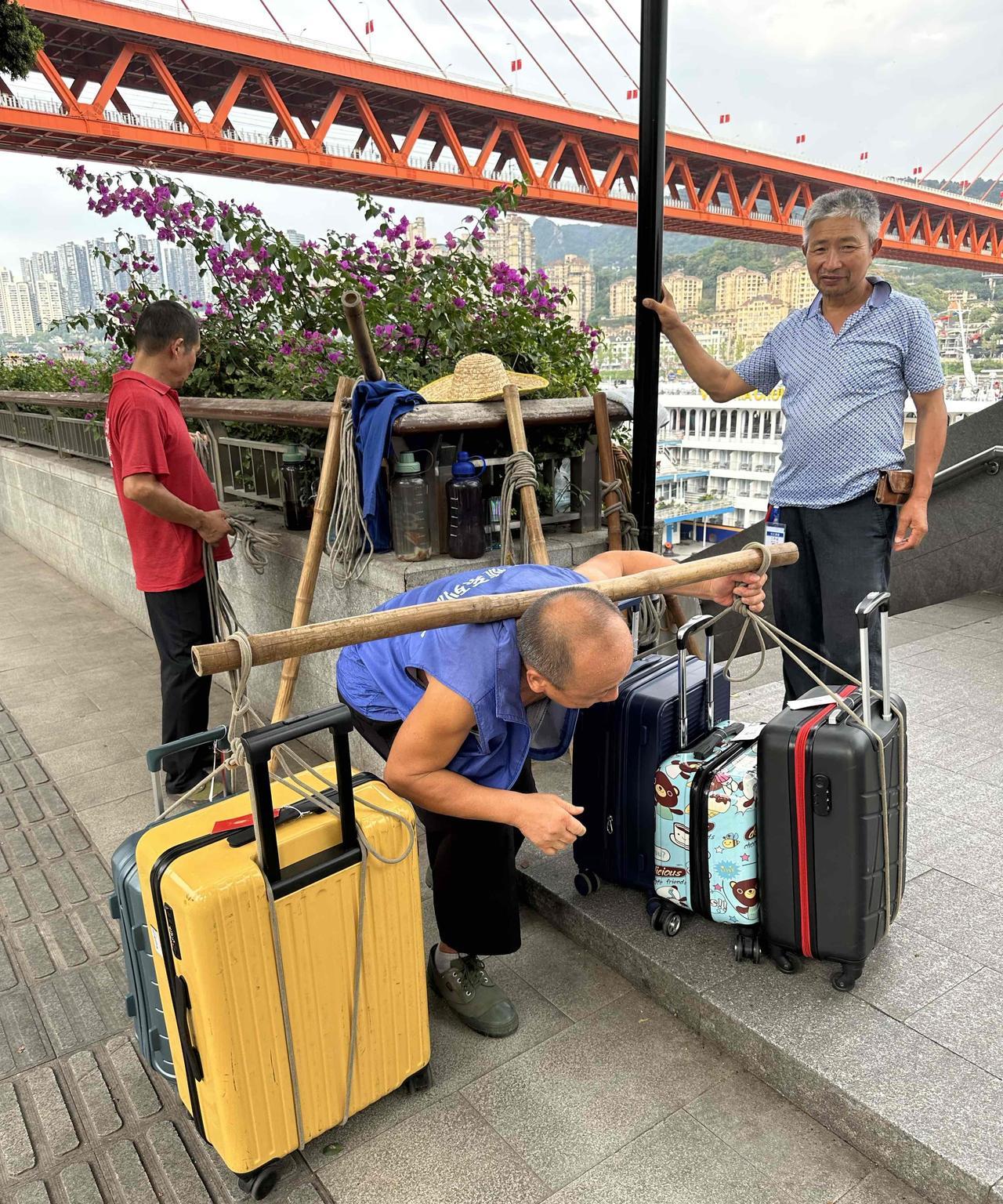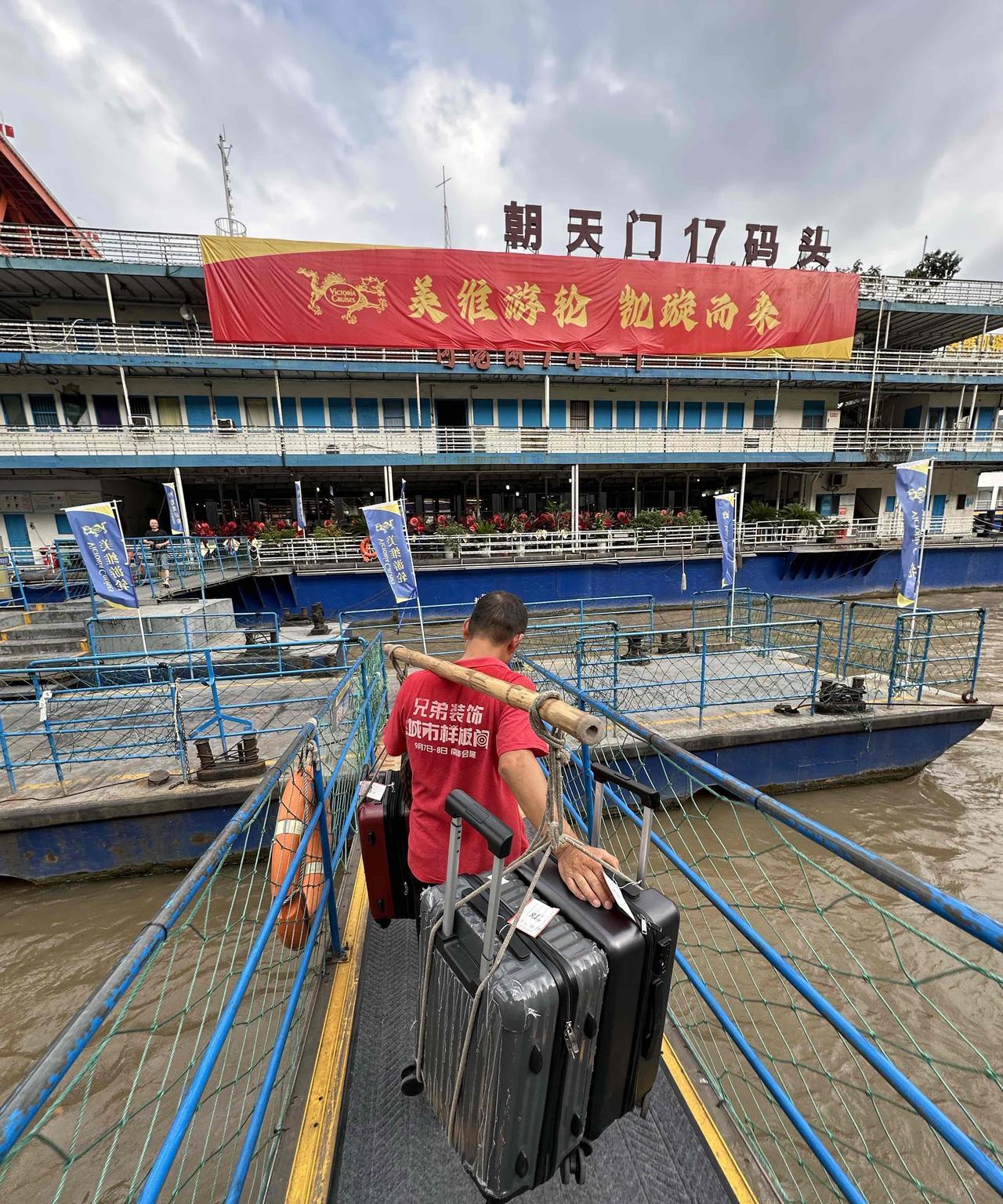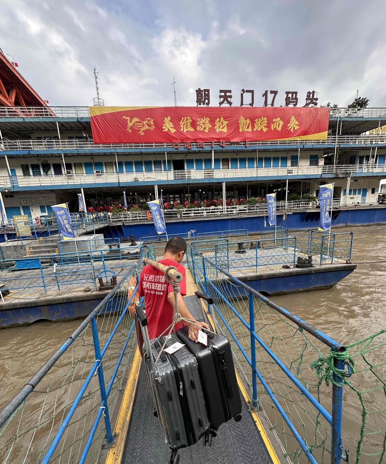 五星级豪华游轮,美维凯璇号,乘客是不用自己辛苦搬行李的,因为船方请了很多重庆棒棒
