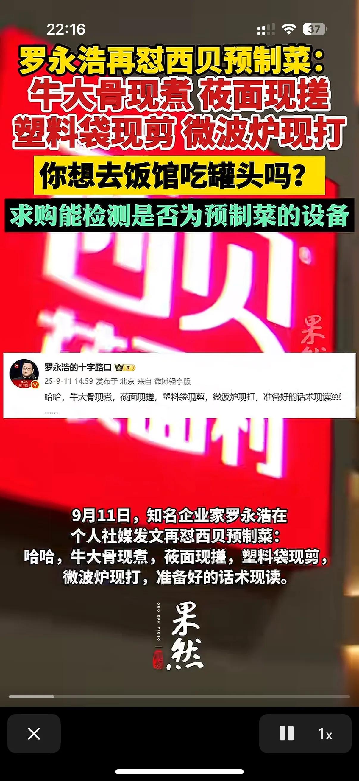 罗永浩这次失误就失误在不应该说西贝是预制菜上了,如果罗永浩单纯的说西贝不好吃,难吃,那么西北虽然说很难受很生气,但是依然拿罗永浩没有任何办法,因为饭菜的好吃与否是一个人的主观认识,有的人喜欢吃咸的有的人喜欢吃甜的。口味不同,如果罗永浩单纯的说西贝不好吃,弄不好西贝还的感谢罗永浩提出批评,说自己认真改进。 毕竟罗永浩的影响力在那呢! 可是现在罗永浩说西贝是预制菜,那就等于自己主动把把柄交给西贝了,要知道咱们国家食品安全上对预制菜是有个评判标准的,和咱们普通人对预制菜的认识是有差距的! 现在罗永浩在网上悬赏十万元征集预制菜的线索,虽然没有明着说是针对西贝,但是大家都知道! 西贝的创始人和合作商都表示一定要起诉罗永浩,毕竟这次关于预制菜的言论给西贝真的带来了很大的影响! 要知道上一次罗永浩的失败还是拍摄关于星巴克的超大杯!也是关于食品类的可以说罗永浩在自己不擅长的行业是很容易失败!