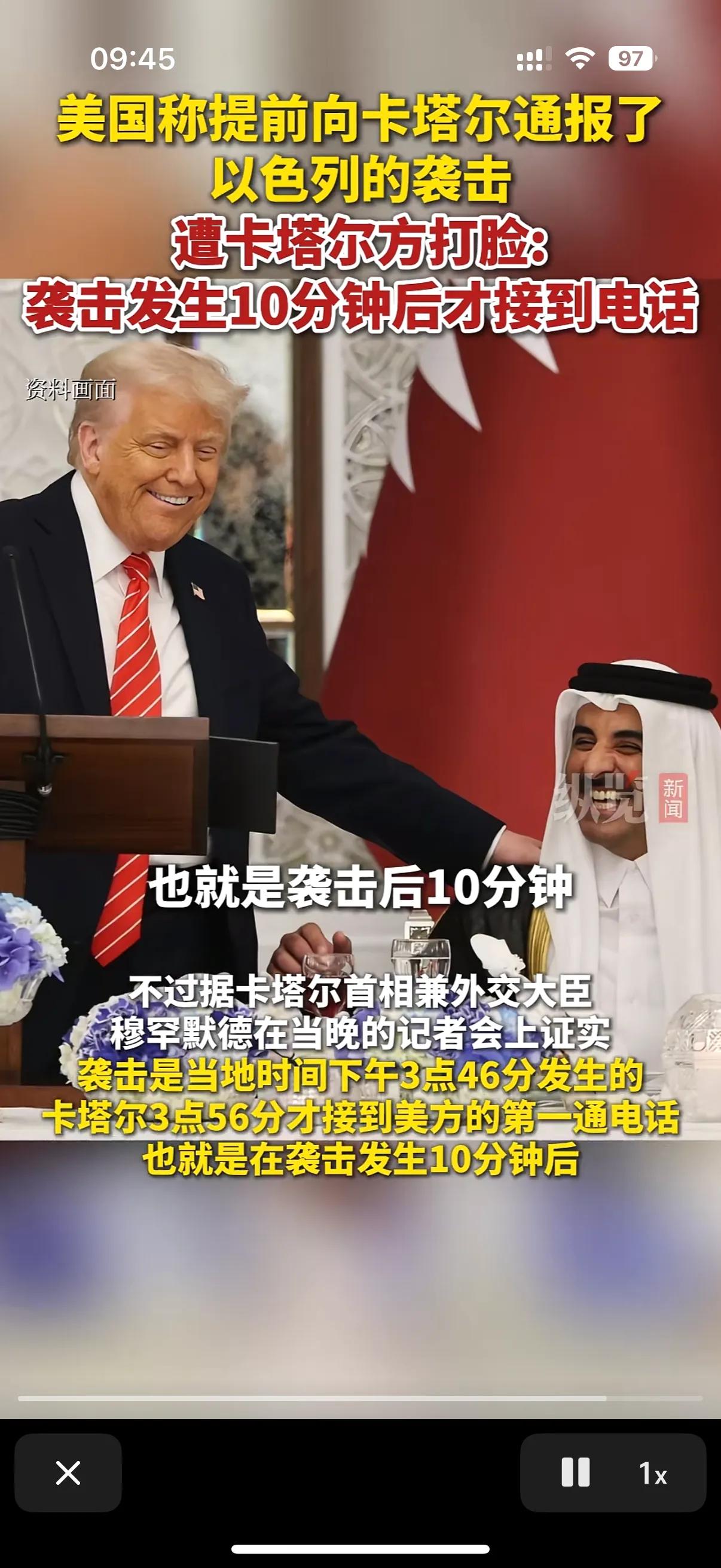 现在中东这地方真是乱成一锅粥了!在卡塔尔被以色列真的饿空袭成功之前,没人吧以色列说的话当真的。 毕竟以色列和卡塔尔不说离着十万八千里,但是绝对是离得不近,以色列是没有这种远程攻击武器,单纯靠无人机袭击是不现实的。 所以大家之前对以色列说要袭击卡塔尔的时候,大家都是按照之前的惯性认为这就是以色列的嘴炮行为,万万没想到的是,以色列真的会袭击卡塔尔,而且还袭击成功了! 不少人说这就是美国不但在言论上支持了以色列就是在袭击上也支持了以色列不然以色列是没有这个能力的! 但是美国在支持袭击上所表现的态度就很耐人寻味了! 以色列发表的声明当然说是获得了美国的大力支持! 美国说在袭击之前自己获得以色列要袭击卡塔尔的时候第一时间就通知了卡塔尔,可是卡塔尔说,美国给通知的时候,卡塔尔早就被袭击了! 至于说美国是否在事实上支持了以色列的这次袭击,白宫这次表示了沉默,既不否定也不承认,只是说自己知道这个消息就很晚了,不过特朗普表示以后不会让这样的袭击再发生在塔卡尔了! 看来是变相要收取保护费了! 谁不听话,美国不自己动手!