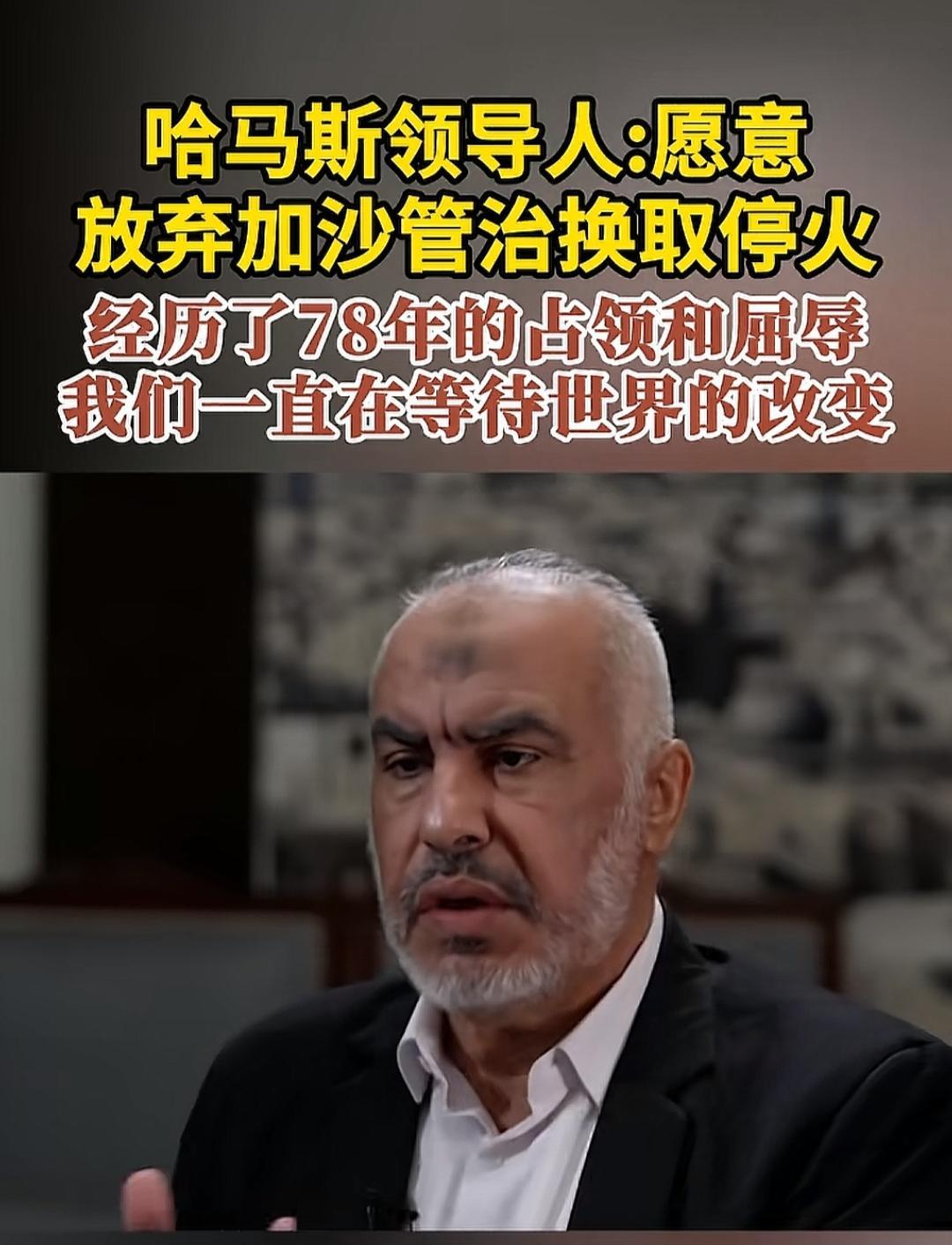 哈马斯认输,向以色列屈服。领导人哈马德表示,愿意以放弃加沙管制权来换取停火,听清楚了,他说他们要放弃政权(虽然在以色列的打击下已失去了政权)。 这一退让,将让中东权力格局发生重大改变,进而影响世界两大阵营势力的此消彼长。这对伊朗、俄罗斯等国家可不是一个好消息。那方曾经召集多股开会,布置各股共享权力,明眼人都能看出来,那次会议保送的是哈马斯。现在,哈马斯声言放弃,竟然要放弃,对得起背后的大佬们吗? 当然,哈马斯放弃,是明智的选择,客观现实,不论从哪个方面讲,哈马斯都没有再坚持下去的理由,剩下这几根毛毛,再继续连累加沙230万人民,就太说不过去了。 以色列硬是赢了?这一赢赢得可不小。只是以色列信哈马德的话吗?哈马德真的能代表哈马斯吗?以色列会根据自己的判断来决定下一步的行动。按现在完全不对称的力量对比,以色列可能根本就不在乎哈马斯的什么人又出来说了什么话。