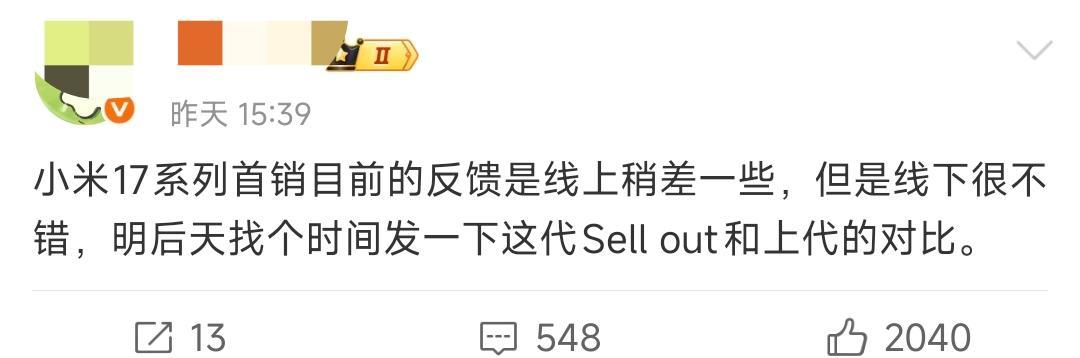 卢伟冰回应各大“分析师”对小米17系列的唱衰:小米17系列有信心超过小米15系列。不信谣,不传谣。 [捂脸][捂脸]老辣也不知道咋说,几个数据分析师能够把一个企业的股价怼跌超过10%。 还被水军利用,到处宣传小米17系列销量表现不佳,营造“小米不行了”的梦境。 仁者见仁智者见智吧。 有个数据分析师已经改口风了,还没开售就预测不行。 结果主打线上的小米,线上不咋地,线下却爆单了,实属意外!