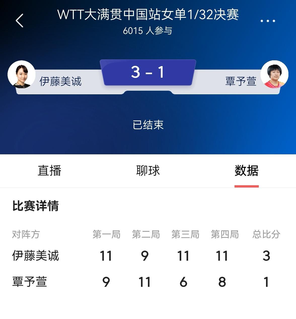 中国女乒小将覃予萱真是太可惜了!在刚刚结束的一场世乒联大满贯赛中国站女单首轮中,小将覃予萱迎战日本名将伊藤美诚,最终覃予萱以1:3输给了对手,非常遗憾的止步首轮。 值得一提的是,本场比赛覃予萱是有获胜的希望的,但是由于比赛经验的欠缺,她最终还是输掉了比赛。