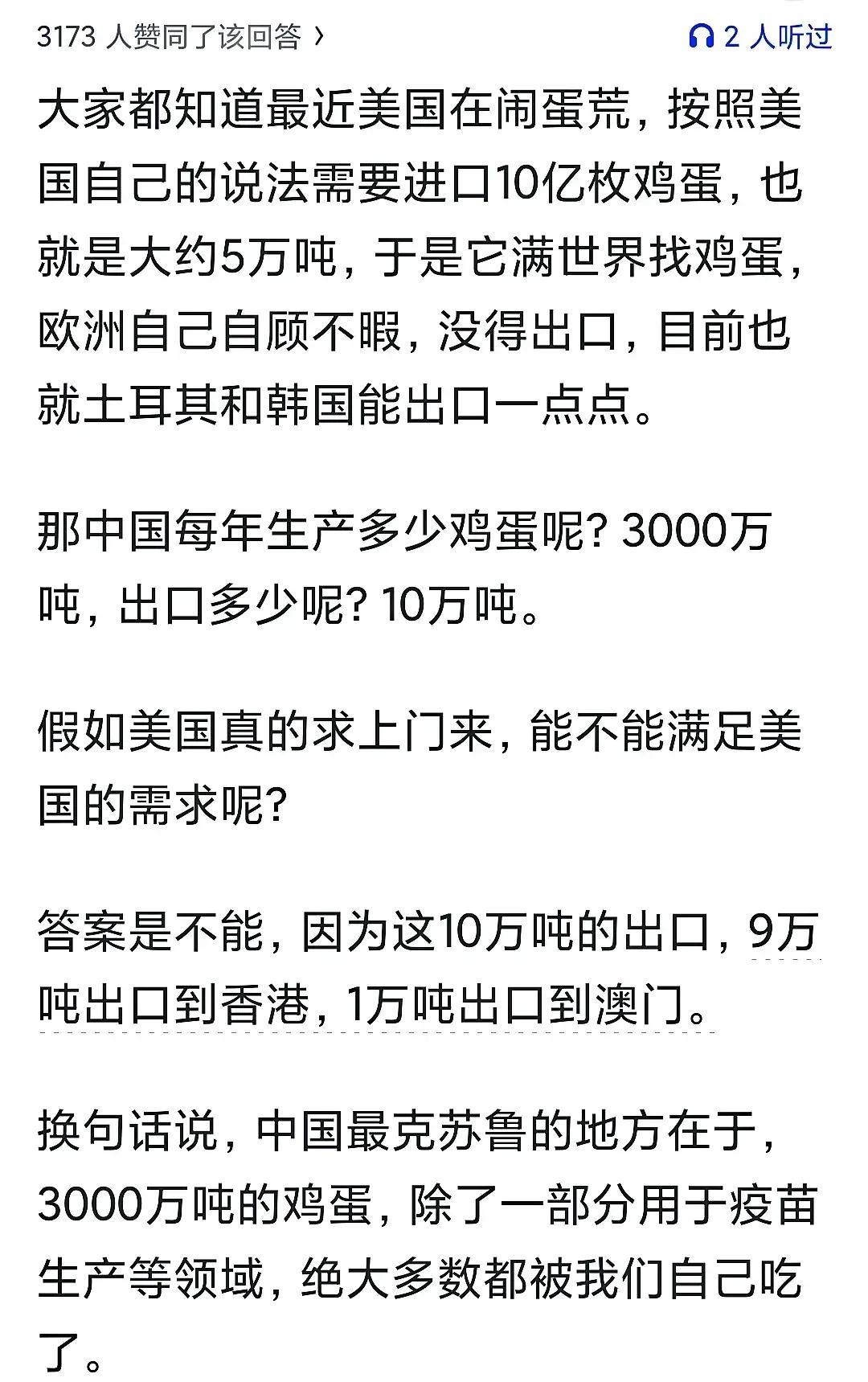 鸡蛋还好,你应该看看西瓜的数据,年产量占世界产量的80%以上,然后全被自己吃了,甚至还在进口其他国家的