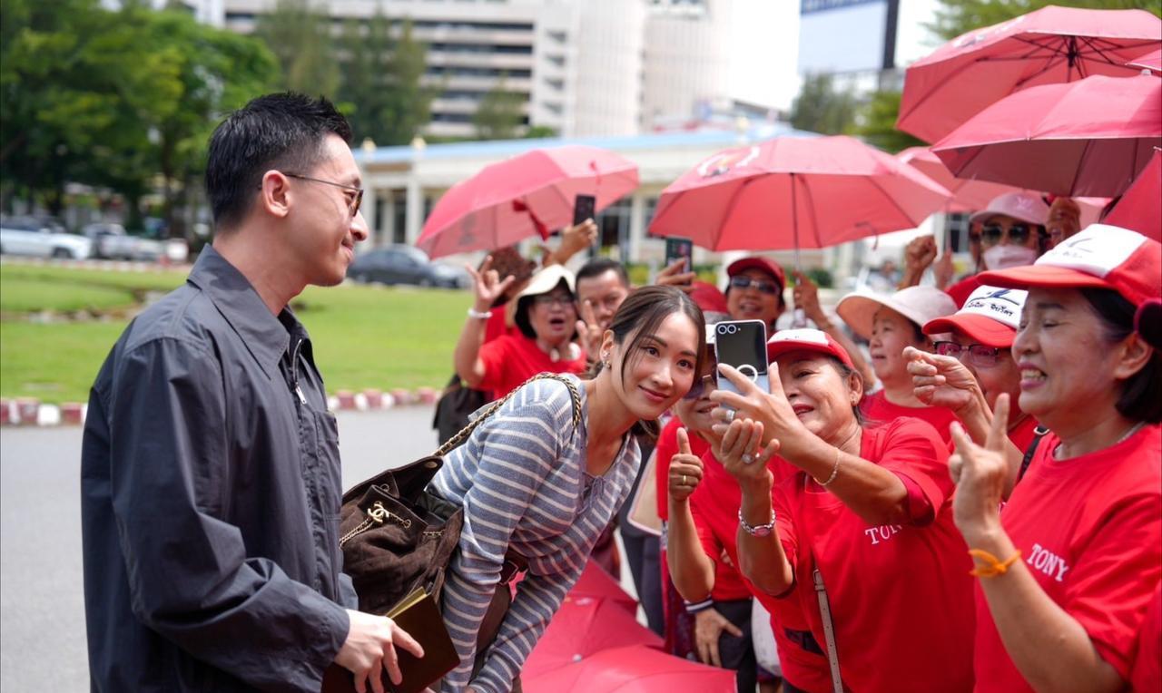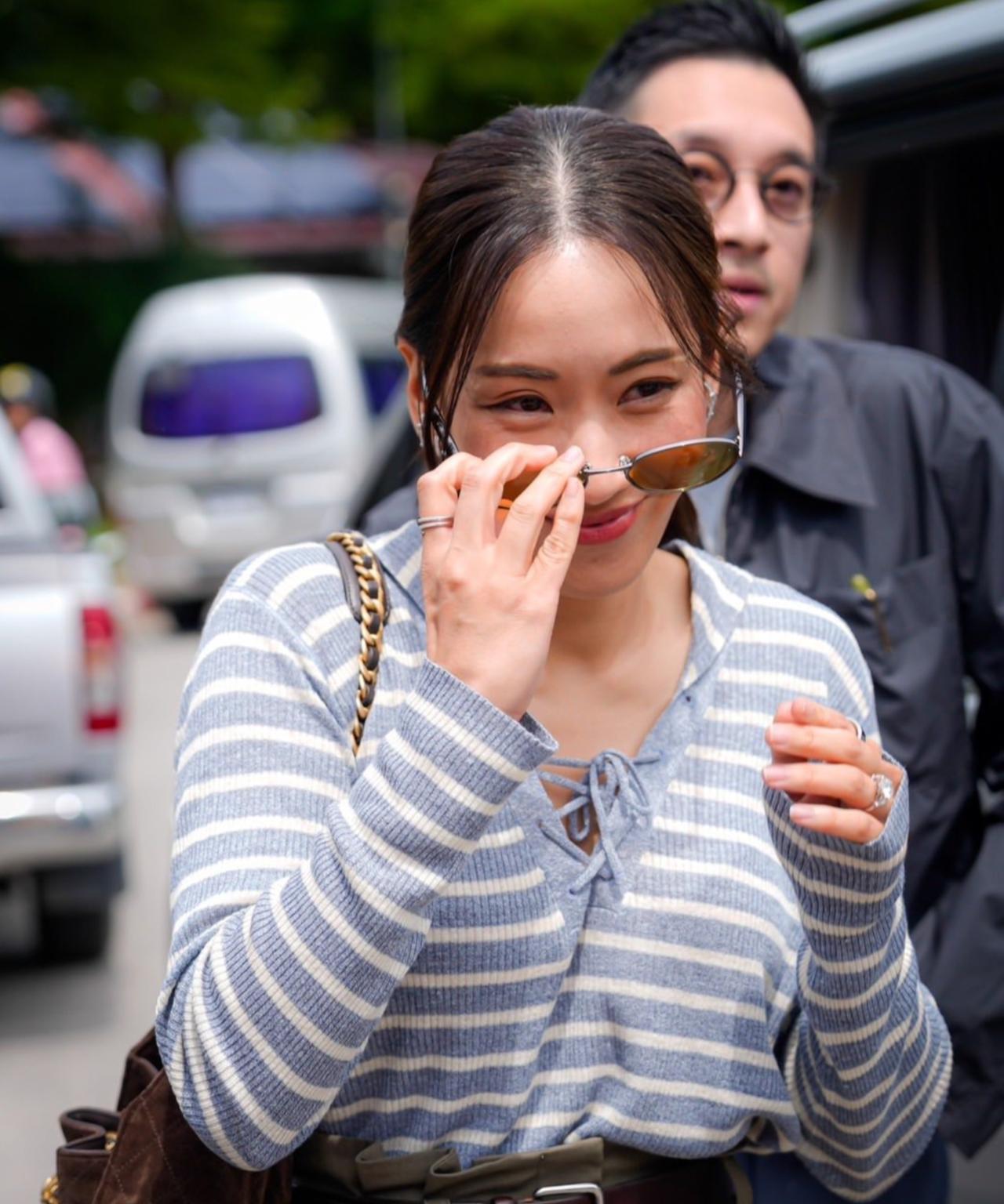 佩通坦姐姐好时髦,颜值和气质都更胜一筹 2025年9月29日上午11时,萍通塔女士与丈夫Nattapong先生,抵达Klong Prem中央监狱,拜访前总理他信·西那瓦。现场,红衫军成员身着印有他信漫画、写有“永不放弃”字样的服装,为其加油鼓劲。二人一到,便热情迎接红衫军群众,与他们亲切打招呼、合影留念,并齐声高呼“我们爱他信”。随后,两人与律师Winyat Chatmontri先生一同,穿过监狱大门探望他信。