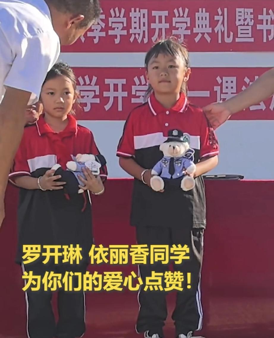 上人民日报了!云南西双版纳,两名7岁小女孩在路边发现一位迷路大爷,但当她们上前询问大爷情况时又发现,大爷话语不清无法沟通。为此两个小女孩并没有放弃帮助大爷,而是一路贴心搀扶着大爷前往派出所寻求帮助。 可见两个女孩带着大爷来到派出所后,虽然显得有些胆怯,但她们还是清楚的向警察同志说明了情况。 这警察同志见是两位小女孩帮助了老人,也是对她们助人为乐的行为竖起了大拇指,并一人奖励了她们几瓶饮料作为鼓励。而拿到饮料的两个小女孩,也是高兴得又蹦又跳的就回家了。 本以为事情就此结束了,但警察同志为了宣扬两个小女孩助人为乐的精神,特意找两个女孩所读学校,并当着全校师生的面赠送她们警察小熊表扬她们,同时也希望所有同学都向她们学习! 不得不说,两个小女孩太暖心太善良了!看来善良是不分年龄的!而她们教科书式的热心帮助别人,更是小朋友甚至大人都应该学习的榜样!必须向这聪明又可爱的俩个小女孩点赞学习! 当然,警察同志当着全校师生表扬这样的好人好事的行为,更是做得恰到好处。这不但为同学们传递了这份美德,也是温馨的“滋养”了两个孩子心中那颗善良的种子茁壮成长!愿这份美德传递到每一个人心中!