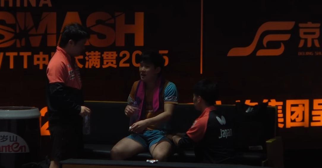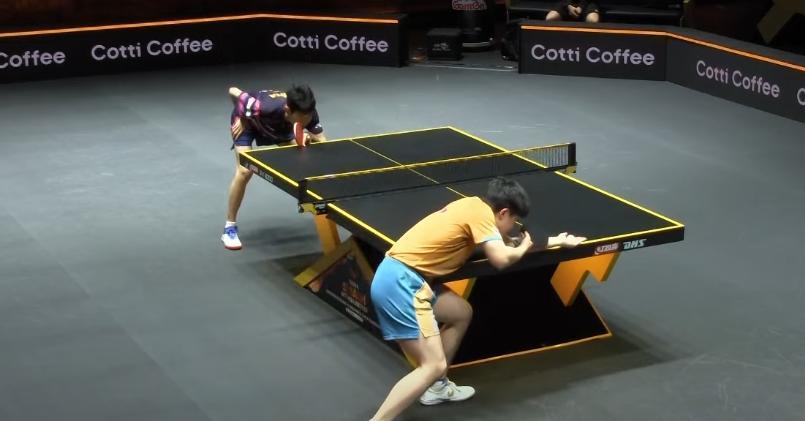 张本智和突然跑了,啥意思? 他又想用了什么招数? 正发着球呢, 朝裁判指了指拍子, 跑了! 难道又说球拍上有水? 这是医疗暂停后的新招数吗? 今晚陈俊松打疯了, 前两局和张本打成了1:1 第三局又是11:8拿下。 再赢一局就送本子一轮游。 第四局, 张本急眼了, 上来就是猛攻 4:0开局 11:8扳平。 第五局 陈俊松心态超稳, 关键球逆转张本智和, 赢了!