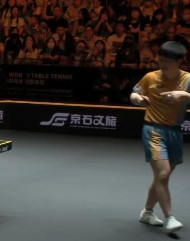 张本智和突然跑了,啥意思? 他又想用了什么招数? 正发着球呢, 朝裁判指了指拍子