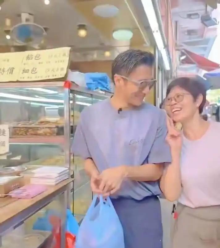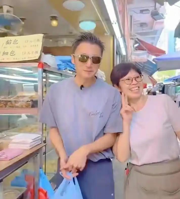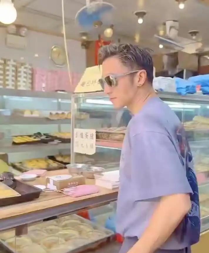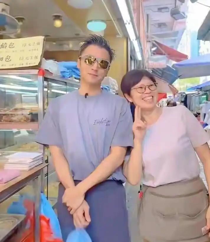 谢霆锋逛街买糕点,老板娘求合影笑到眯眼,无明星架子互动接地气![赞][赞]