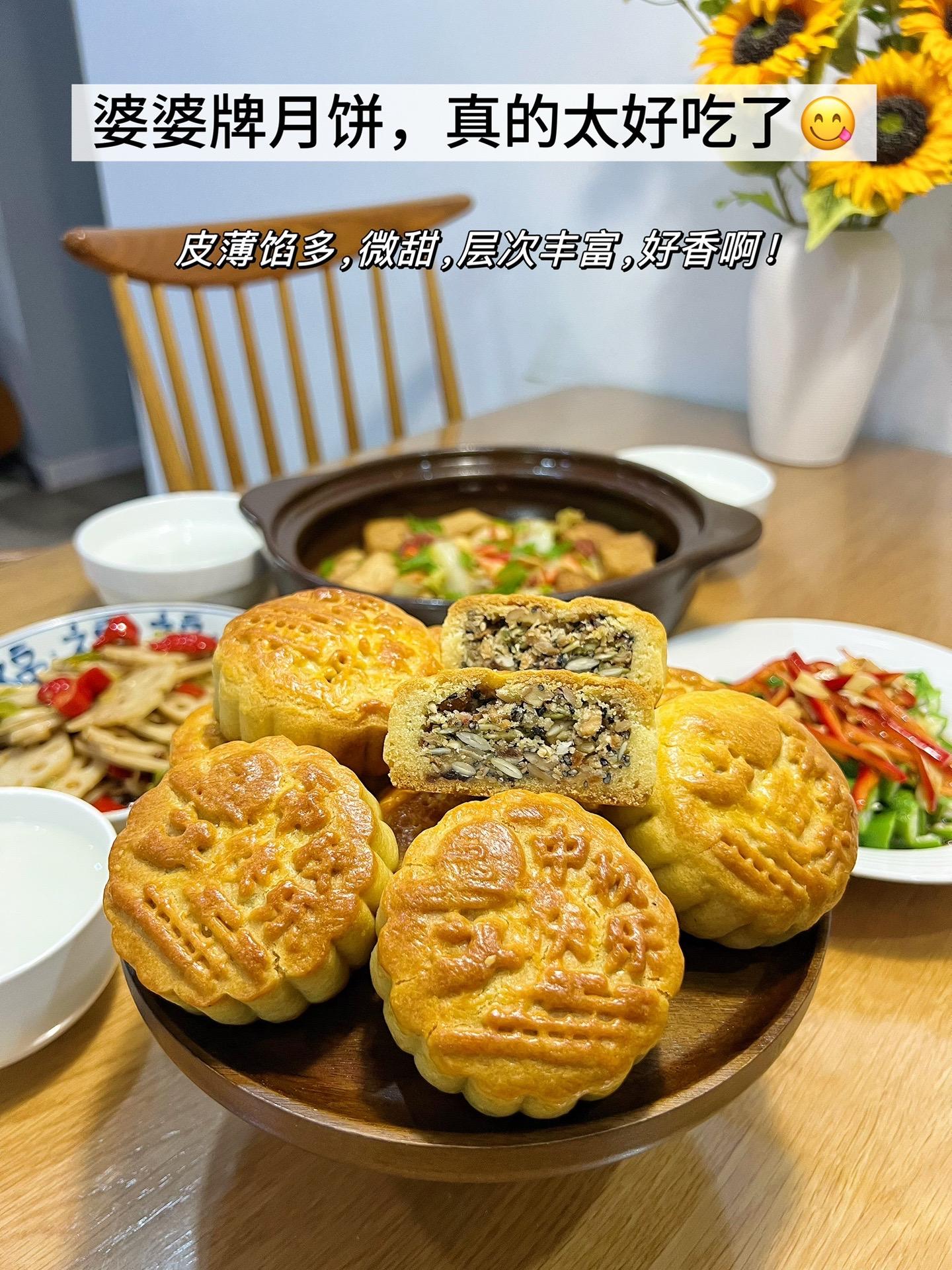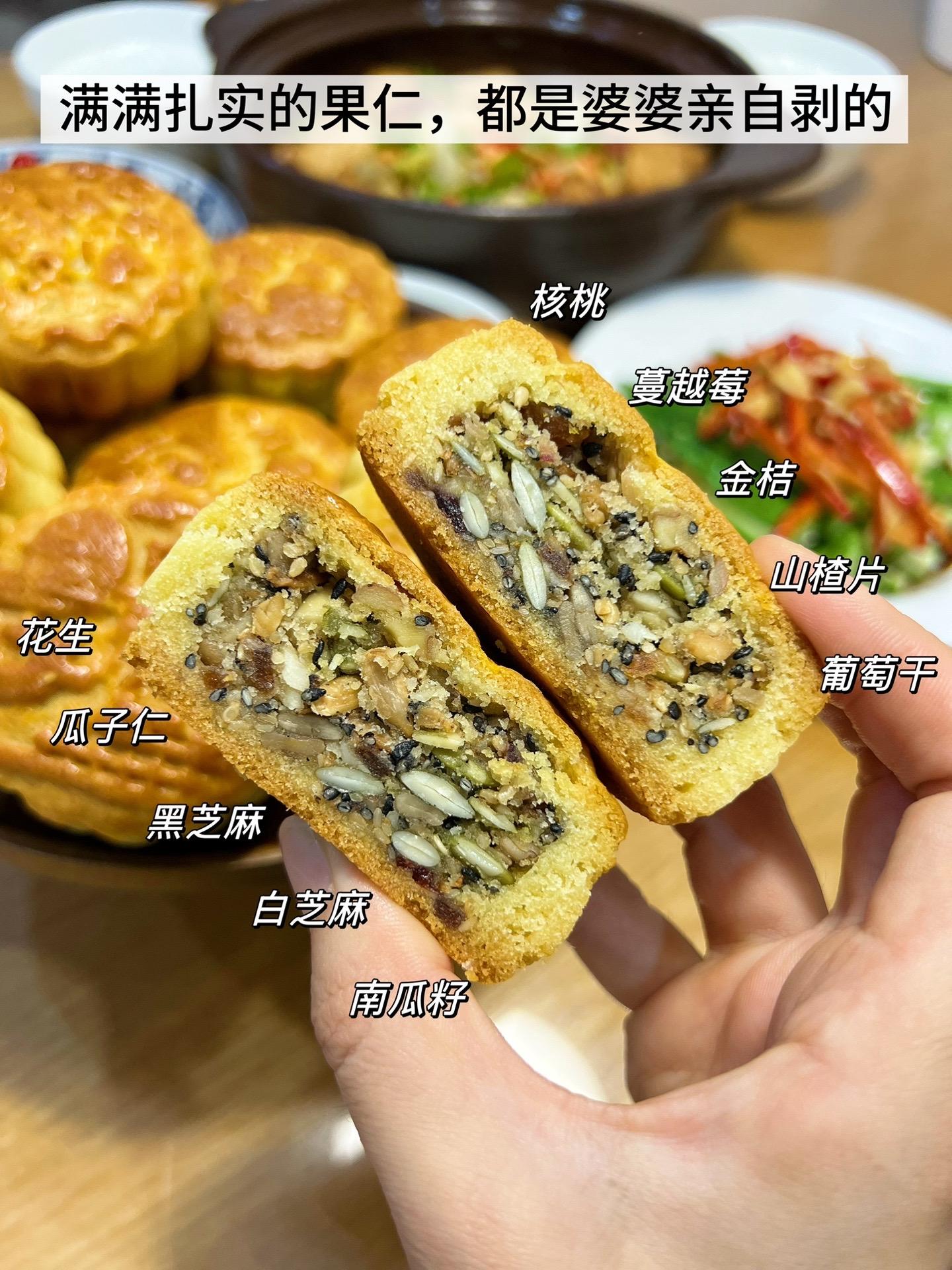 婆婆忙碌了两天,复刻了我爱吃的五仁月饼,今天上了桌。