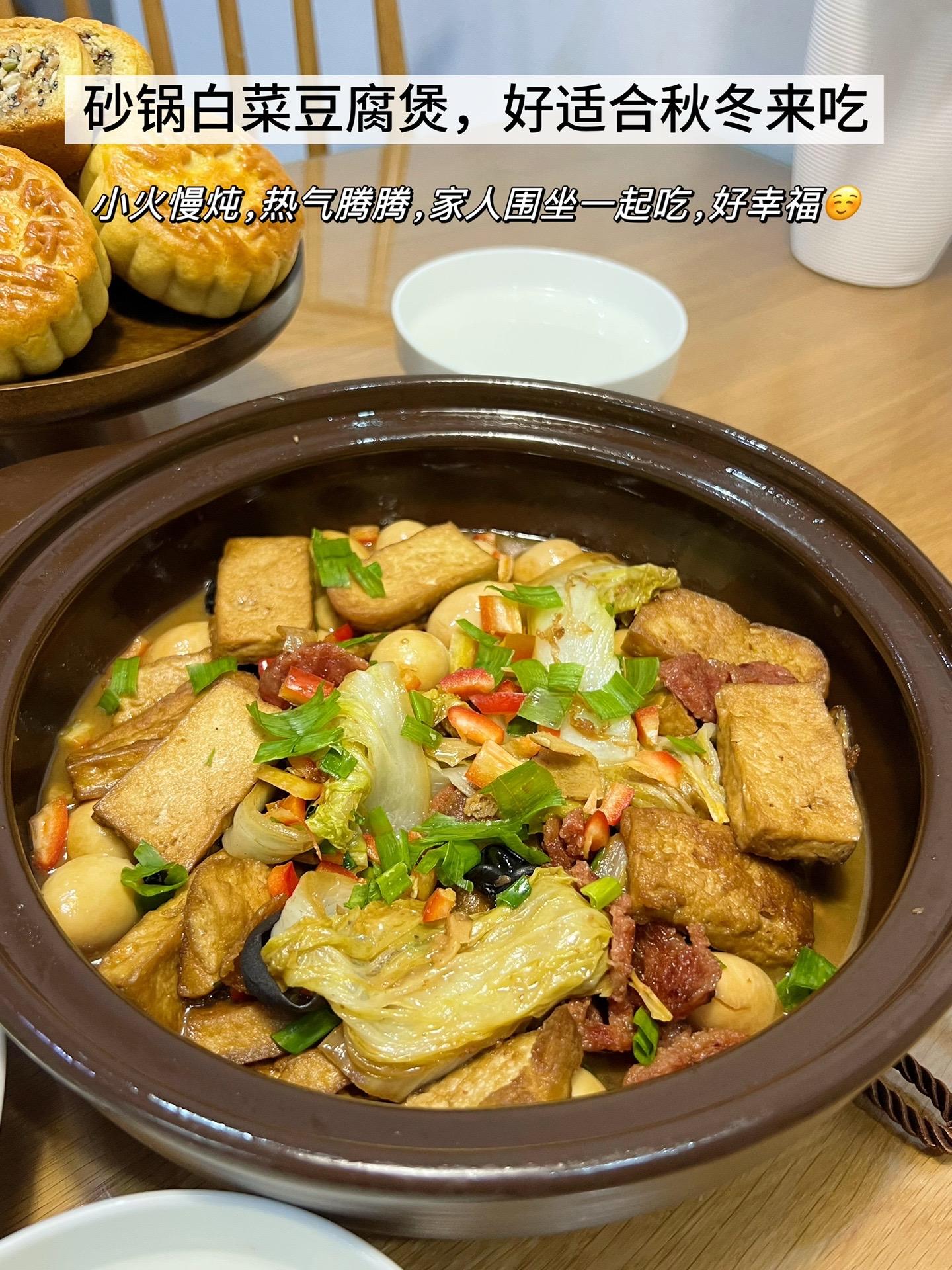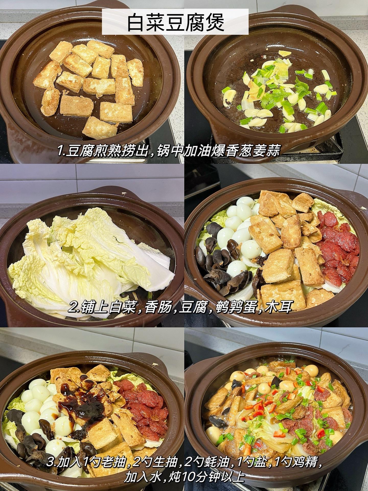 做了热气腾腾的白菜豆腐煲,特别适合今天凉凉的天气来吃。