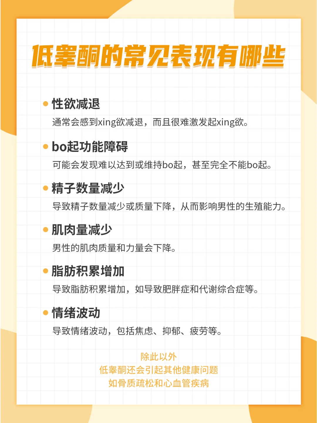 除此以外,低睾酮还会引起其他健康问题,如骨质疏松和心血管疾病。