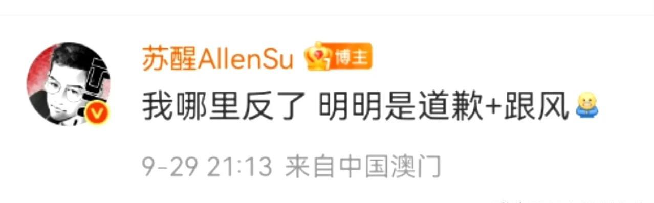 我来翻译一下苏醒的道歉声明: 第一,河南朋友反应大(你们小气); 第二,我应该套