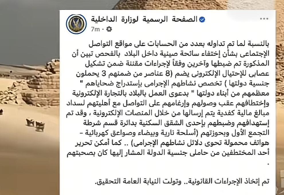 我总算明白了21岁女孩赴埃及旅游失联的真相了! 就在9月30日埃及那边官方发布通报,而在通报中详细讲述了这件事,这名女孩池某不是网传的,因为证件问题被埃及帽子叔叔给控制了,而是因为她参与电诈被抓了。她是隶属于一个专门从事电诈的犯罪团伙,而这个团伙中一共有8人,她是其中的组织者之一。 他们主要以在埃及从事电子商务工作为名,然后以高薪诱骗自己的同胞来埃及工作,等对方到达埃及之后就绑架对方,然后让对方联系家人索要高额的赎金。埃及的帽子叔叔在抓到他们这个团伙时,在他们住处查获了枪支等武器等,而且还解救了一名被骗的女生。 好家伙,原来所有的人都被她给骗了。她根本不是对埃及的金字塔感兴趣,她也不是去埃及旅游的,而是跑到埃及去骗同胞去了。亏咱们之前还担心她的安危,担心她别被坏人给骗了,原来她才是那个最大的坏人。而此刻估计最愤怒的人,不是咱们这些局外人,而应该是池某某的好闺蜜。 在她所谓失联之后,这个好闺蜜是担心的睡不着,甚至还在网上疯狂发帖求助他人。而从这位女生晒出的一些聊天来看,这个池某曾多次鼓动她去埃及,说自己一个人孤独什么的,想要让她来陪陪她,原来都是别有目的的。她以为自己是池某的好闺蜜,殊不知自己不过是对方的猎物而已。也得亏她没去埃及,否则后果真的不堪设想啊。 与此同时,我也终于明白了,为何在找到这个池某之后,埃及帽子叔叔选择保密的原因了!他们只是不想把这事给闹大而已,不想却因此池某的失联,冲击到了埃及的旅游业,所以埃及官方才以通报的形式公布真相。到了这,我只想说这个池某被抓真的是罪有应得。最后也奉劝所有的人一句,天上不会掉馅饼,好闺蜜你也得防着点。