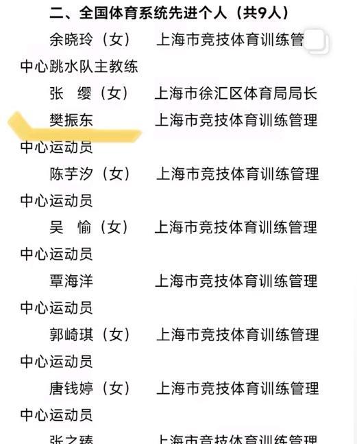 全国体育系统先进个人公示,陈芋汐、樊振东等9位奥运冠军领衔入选。 国家体育总局正