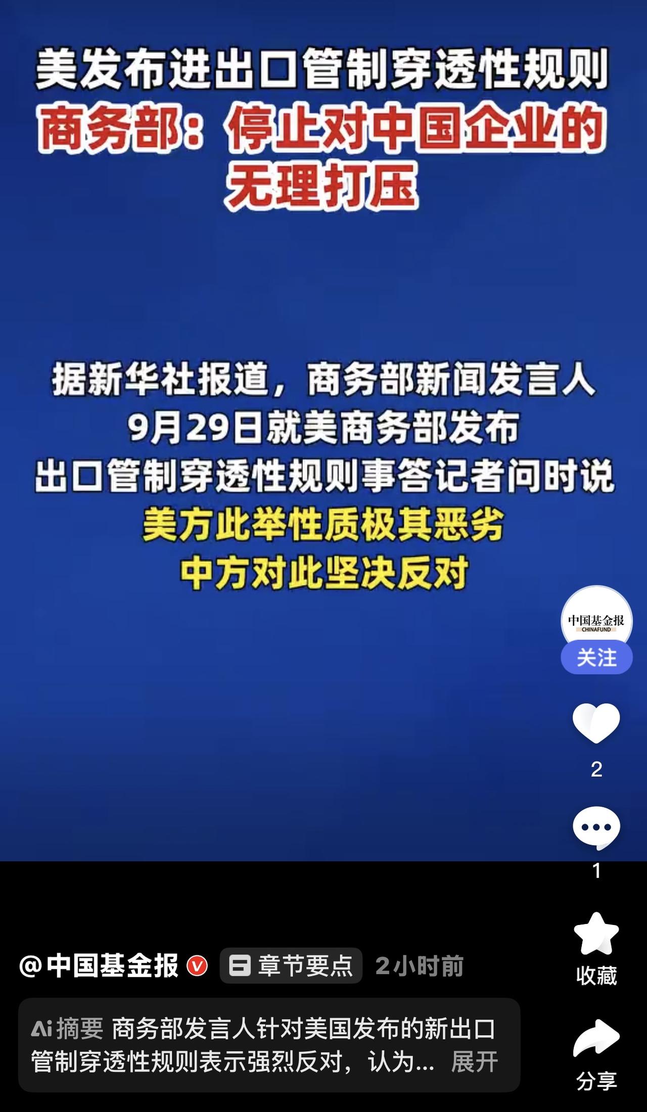 美方这一措施直接针对中国企业,性质恶劣,严重损害企业合法权益,并破坏全球产业链稳定。