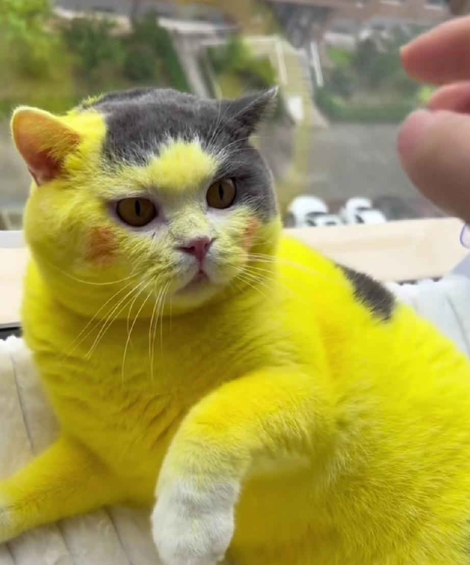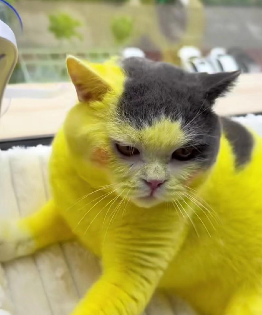 当铲屎官去美容美发时,忽然脑洞大开,竟把自家猫咪也送到了宠物店做美容。 没想到回到家,猫咪竟不让铲屎官碰,还一副气鼓鼓的样子,好似在说:“你个大笨蛋,瞧瞧你把我染成啥样了,你要是觉得好看,自己染成这样试试!” 铲屎官又是好言安慰、又是轻轻抚摸,可猫咪依旧极为抗拒。真不知猫咪要多久才能消气。 人人皆有爱美之心,宠物也不例外,你把人家染成这般模样,难怪它不理你了。