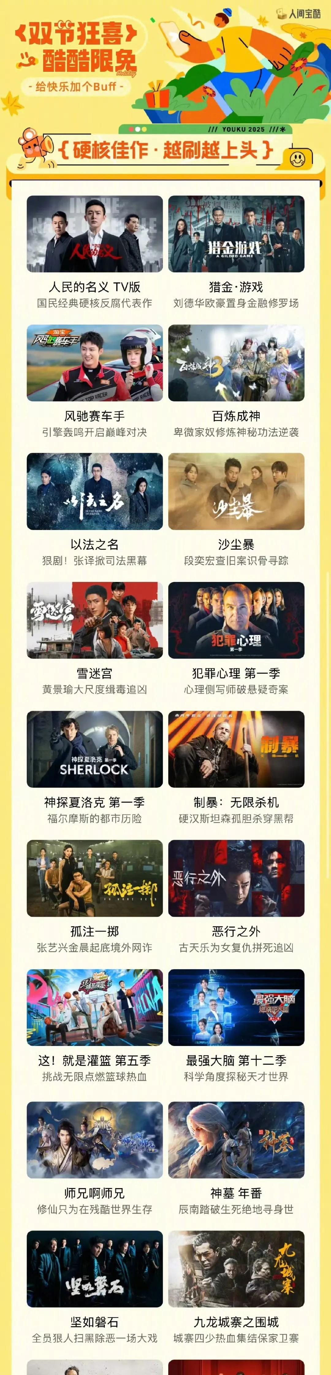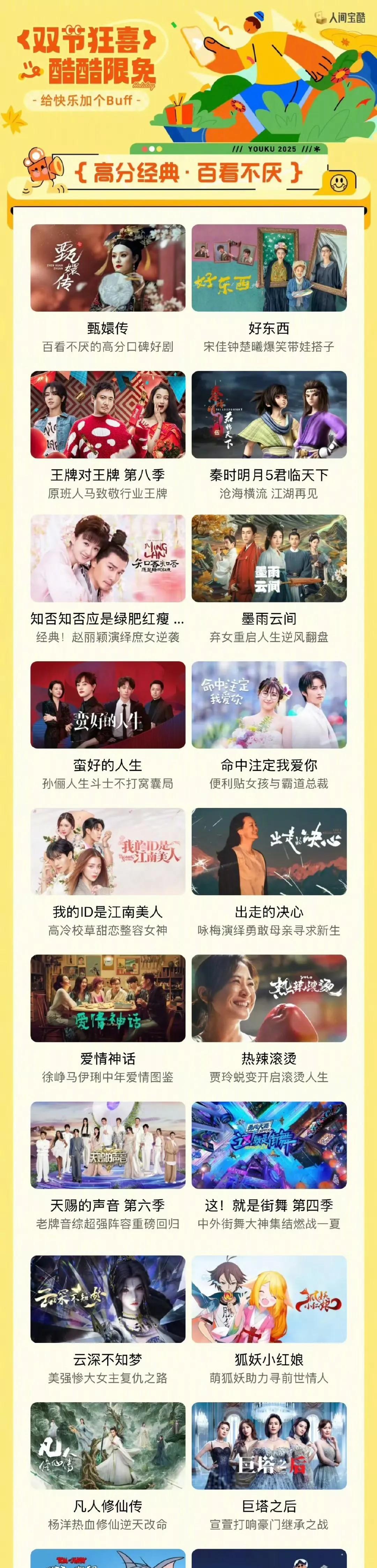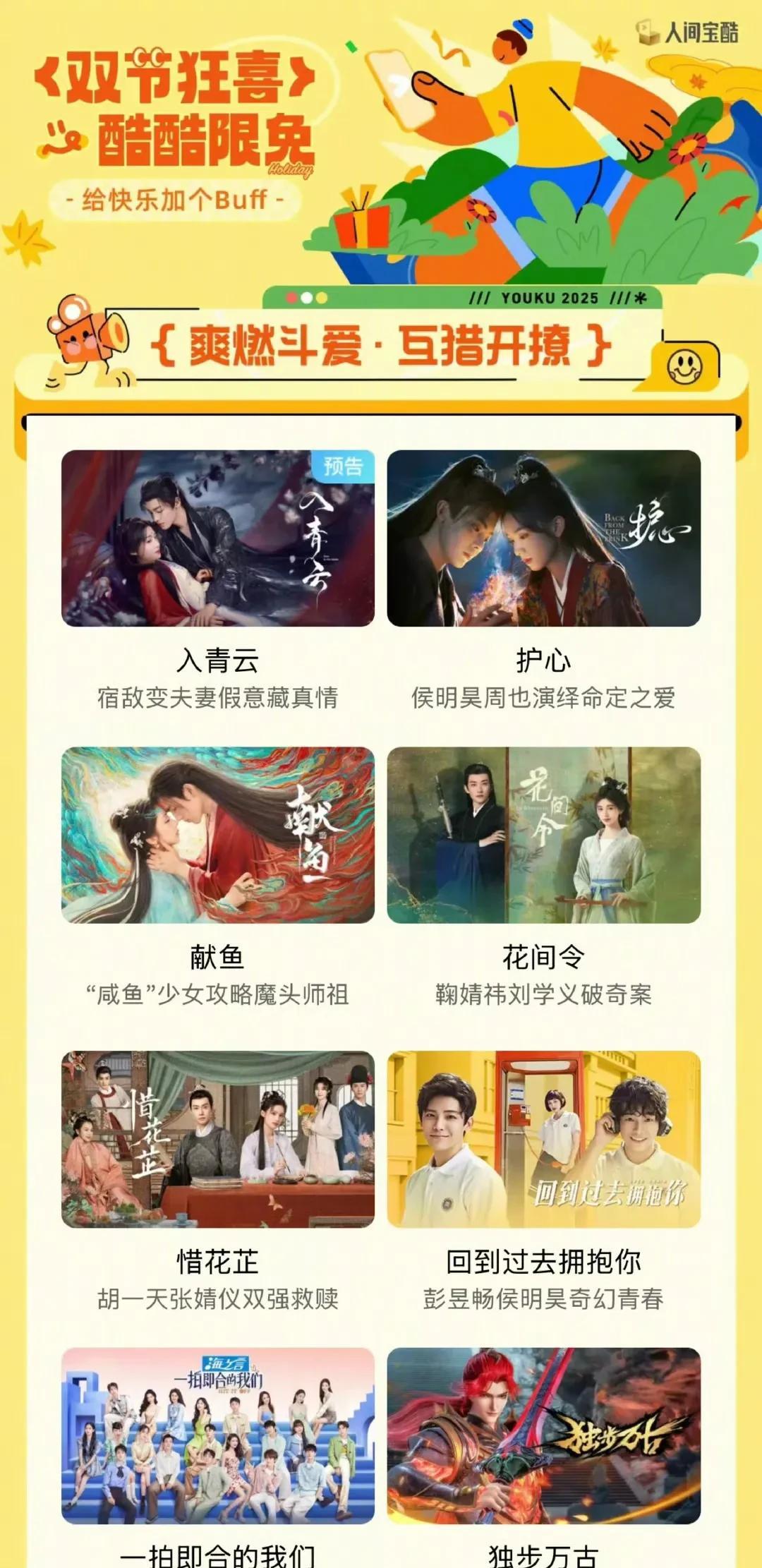 《藏海传》《异人之下决战!碧游村》《少年白马醉春风》《幸福到万家》《长安十二时辰》,《多啦A梦 第一季》,《刺杀小说家》《扫毒》到综艺《奔跑吧 第八季》……