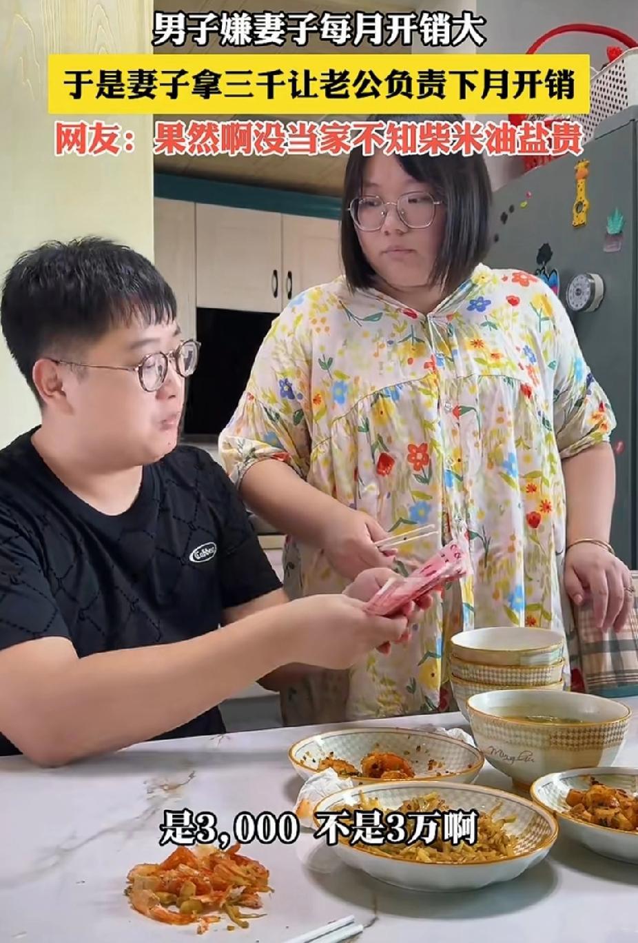 男子嫌妻子每月开销大,突然妻子拿了3000块钱给他。妻子跟他说: “下个月的菜,你来买。”男子拿着钱数了数,妻子却在一旁边交代,她说: “记得买点牛羊肉,买点虾。还有水费、电费、煤气费、物业费别忘了交,另外房贷别忘了还。” 男子听着妻子的话愣了一下,他还没反应过来时,妻子又跟他说: “不是马上过中秋节了,两边父母的钱,你记得给一下。” 男子准备跟妻子说,钱不够时,结果妻子又跟他说: “还有你答应你儿子,国庆节要出去玩,你老表国庆节要结婚,别忘了随份子。” 男子立马反驳妻子说: “你给我是3000元,不是3万。”妻子却跟他说: “我知道啊。”男子说: “不够啊!” 结果妻子却跟他说: “够,肯定够,昨天晚上你问我,你上个月给我的3000块钱还剩多少的时候,我一晚上都没睡着,我感觉自己太失败了。我一个月竟然花了你3000块钱,以后这个家你来当,好不好,我能力没你强。” 结果男子立马觉得头大,他把3000块钱递给妻子说: “还是你来。”结果妻子没接过钱,转身去厨房洗碗了,不理他。 其实这事情主要也是男子没有站在他妻子的角度来考虑,真的是不当家,不知柴米油盐贵。 而他嫌妻子每月开销大,那是他不管家里的开销,只知道每月妻子总的花了多少钱出去,并不知道每一笔钱都花在了哪。 而且妻子管理的开销中,很多都是他看不见但不可少的。就比如人情往来、孩子的学习用品、家庭日用品储备等,这些开支单笔可能不大,但累积起来就很可观。 而妻子负责采买,深知当下物价和家庭各项琐碎开支的总和,精打细算地花了每一分“必要”的钱,却得不到理解,反而被丈夫嫌每月开销大,这会让妻子感到委屈和不被信任,觉得丈夫“不当家不知柴米油盐贵。” 因此妻子才会用这个方式,让男子来当家,负责家里的开销,就是让男子亲身感受一下,管理家里的开销,也不是容易的事。 所以,妻子的这方式是可行的,与其为自己辩护,还不如让丈夫了解一下家里的钱都是怎么花,或者让他自己来规划家里的开销。 这样一来,丈夫才能理解妻子,也能更直观地理解开销的构成,不会再觉得妻子每月开销大。 而且妻子管理家庭开销,本身就是一项重要、复杂且充满爱意的家庭贡献,它不仅是体力劳动,更是需要智慧和耐心的脑力劳动。 因此当一个家庭出现这种情况,可以通过公开账目、共同复盘、联手预算,将丈夫对“开销大”的质疑,转变为夫妻二人对“家庭真实财务面貌”的共同认知与合力规划。 当焦点从“你花了多少”转移到“我们家需要多少”时,妻子付出的辛劳会被看见,丈夫的担忧会被理解,问题自然迎刃而解。 最后,在一个家庭中,赚钱是贡献,合理规划和管理开支同样是非常重要的贡献,两者相辅相成,缺一不可。 (来源: 云上娱乐)