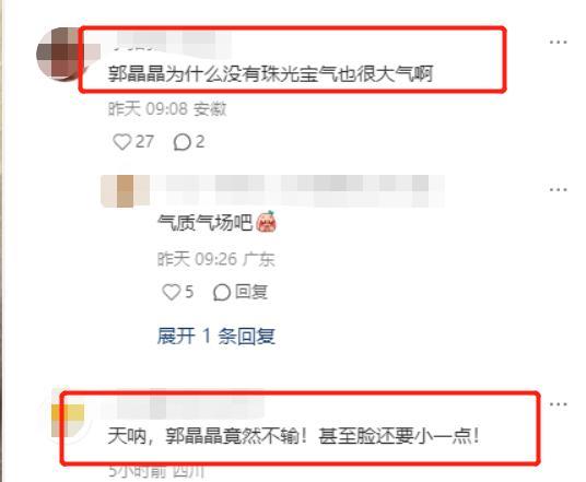 看到朱珠和郭晶晶 同框合影的画面, 瞬间明白什么叫国泰民安脸! 别看平时的郭晶晶穿得很普通,也不太喜欢打扮,可关键时刻真的一点都不让人失望。这次在时装周的秀场被朱珠偶遇,两人同框朱珠这张全球最美面孔差点就稳不住了。 别看朱珠是有备而来,可是遇到郭晶晶这张大气的脸照样是敌不过,更要命的是她这次还和郭晶晶撞包了,要不是她反应快帮包包换了个造型,真的就。。。 。。。 网友看了也直接感叹: 郭晶晶的脸特别神奇, 并不是大美女,身上又没什么珠宝首饰 但跟什么明星在一起拍照她都不输。[赞][赞][赞]