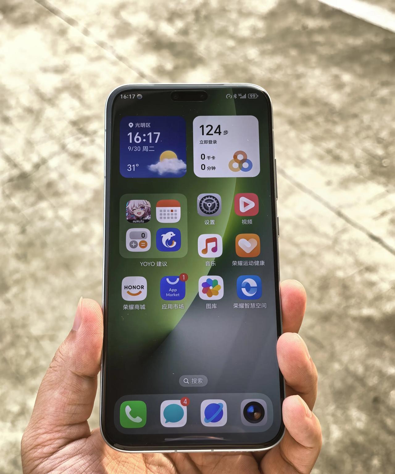 不装摊牌了,已经拿到荣耀 Magic8 Pro 天青色了,应该是 2025 下半年唯一一款还在用等深四微曲屏的旗舰 Pro 系列了,曲屏党狂喜![吃瓜群众] 机身侧边也多了相机控制键,蛮好。 这个颜色虽然叫天青色,但是观感比较接近 Magic7 Pro 的月影灰,算是精神延续啦。