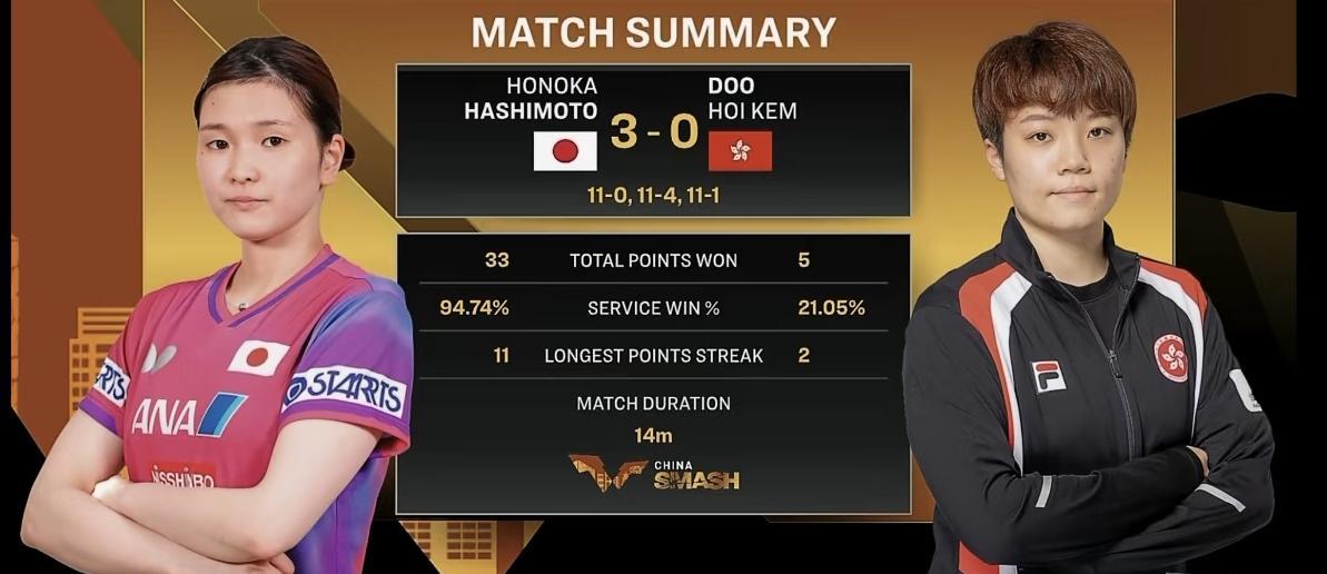 杜凯琹真惨! 三局只得了五分,被桥本帆乃香完全拿捏,看来她真不会打削球啊! 中国大满贯第三个比赛日,刚刚看了杜凯琹对阵桥本帆乃香这场女单16强争夺战,没想到桥本这场20多分钟就光速结束比赛,直接剃光头 这场比赛桥本帆乃香把杜凯琹打的一点办法没有,三局加一起一共得了五分,都是反手上得到的,正手被桥本盯的紧紧的,一出手就丢分,桥本把杜凯琹打的是心服口服 这次北京大满贯,桥本有进步了,下一轮即将对阵王艺迪和阿库拉的胜者,又是一场精彩的比赛,期待 #晒图笔记大赛#