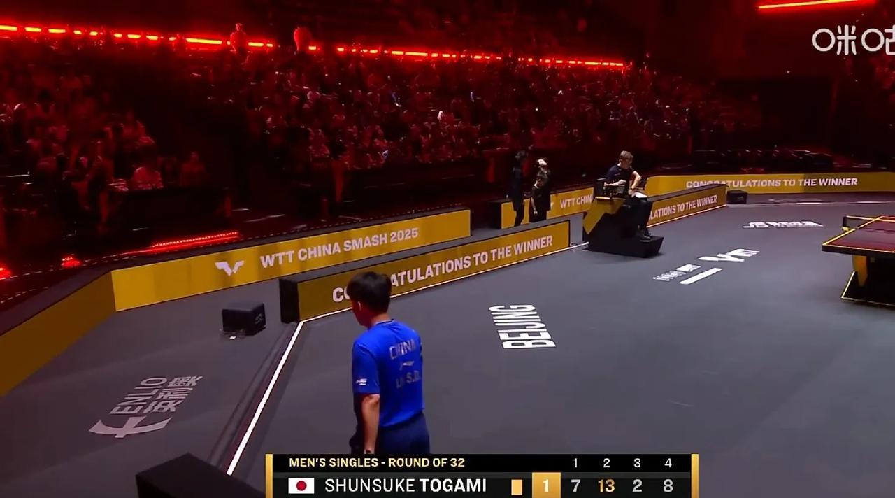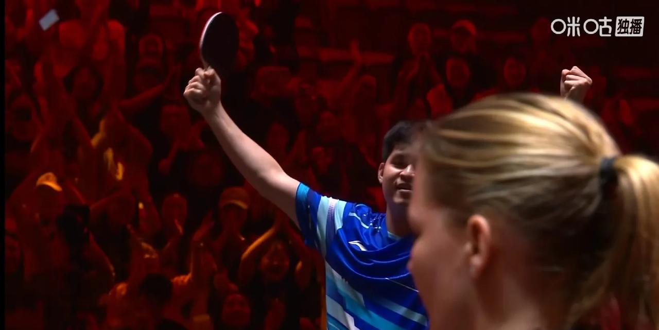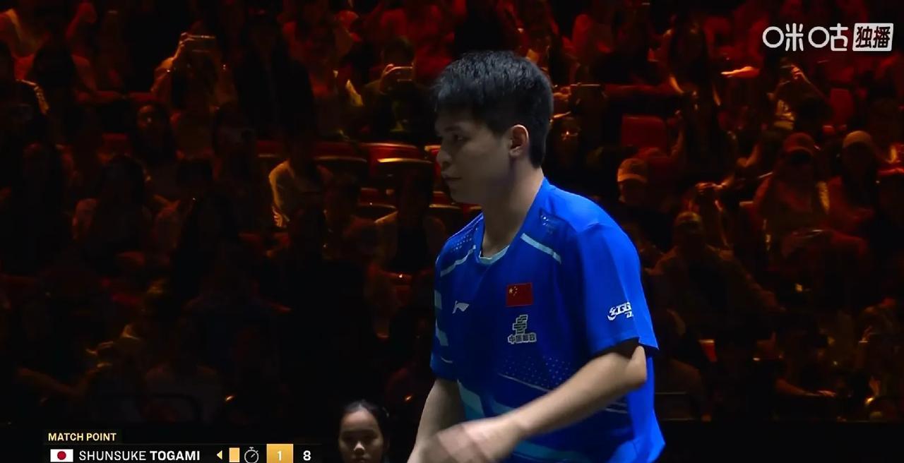 林诗栋以一个精彩的中远台长多拍拿下赛点之后,挥舞双手像凯旋而归的将士,场外王皓指