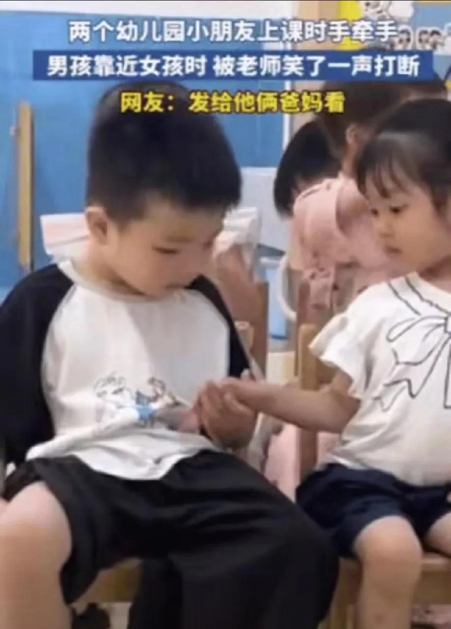 这下瞒不住了,不仅老师知道了,全网都知道了! 福建,幼儿园老师上课时,正在给小朋友录像,突然一小男孩主动牵旁边女孩的手,女孩先是愣了一下,然后选择顺从,盯着男孩看他要干嘛? 没想到,男孩却慢慢靠近女孩的脸,就在这时,被老师笑了一声打断,男孩尴尬的笑了。 男孩叫辰辰,刚满5岁,在班里总爱跟着朵朵转。朵朵性格偏静,说话声音轻轻的,辰辰就总把自己的小饼干分给她,画画时也会主动把喜欢的蓝色蜡笔递过去。 前一天午睡,朵朵梦见妈妈哭了,辰辰还拍着她的背说“我保护你”,这些细碎的互动,老师平时都看在眼里,只是没说破。 3-6岁的孩子正处在社交萌芽期,自我意识刚觉醒,会用最直接的方式表达好感,辰辰的举动不过是把心里的在意变成了动作。 辰辰的手刚碰到朵朵,朵朵确实愣了,她没料到平时只是分东西的伙伴会突然牵手。 但她很快放松了手指,因为辰辰的手暖暖的,和平时帮她捡玩具时一样有力。她盯着辰辰的眼睛,那里面没有别的东西,只有认真,这种认真让她愿意等着看接下来会发生什么。 辰辰慢慢凑近,可能是想跟她说句悄悄话,也可能只是觉得这样能更清楚地看着她,这个年纪的孩子还没有复杂的男女概念,亲近只是表达喜欢的本能。 老师的笑声来得太突然,尖锐又清晰,瞬间打破了两个孩子之间的氛围。辰辰的身体猛地一顿,随即转过身,小脸涨得通红,手指着老师不停晃动。 他说不出完整的抱怨,只能用跺脚和撅嘴表达不满,那是因为他的专注被硬生生打断了——3岁后孩子注意力能集中15分钟左右,当他们沉浸在自己的小世界里时,外界干扰很容易引发情绪波动。 老师或许只是觉得场景可爱忍不住笑,但这种无意识的介入,恰恰忽略了幼儿高投入状态下需要“退位观察”的原则。 网友喊着“发给爸妈看”,多半是觉得这一幕有趣,想分享这份童真。 可真要细想,爸妈看到后会是什么反应?有的可能会笑着调侃两句,有的或许会下意识提醒“不许随便亲小朋友”,甚至有家长可能会过度紧张,像曾经有妈妈因为男孩亲了自己女儿就大闹幼儿园那样。 成人总爱用自己的视角解读孩子的行为,把牵手、靠近这些单纯的举动附上复杂的意义,却忘了这只是他们社交能力发展的正常表现。 辰辰的生气不是没道理,他的“好事”其实是第一次主动表达友好的尝试,被打断后自然会委屈。 朵朵后来低下头抠手指,也是因为那份未完成的互动带来的茫然。老师事后或许该蹲下来问问辰辰“刚才想跟朵朵说什么呀”,而不是任由这份小情绪过去——高质量的师幼互动本就该在孩子需要时引导,而非在专注时干扰。 这件事真正让人在意的,不是两个孩子的小动作,而是成人对待孩童社交的态度。3-6岁是合作游戏占比从20%提升到60%的关键期,孩子通过牵手、分享建立同伴关系,这是他们学习相处的重要过程。 过度调侃或紧张干预,要么会让孩子觉得这种互动是“好玩的笑话”,要么会让他们产生“亲近别人是错的”的误解,两种情况都可能影响社交能力的正常发展。 孩子的世界里,喜欢就是分享饼干,保护就是拍拍后背,亲近就是牵起手说悄悄话。成人该做的是守护这份纯粹,而不是用自己的认知去拆解、干预。 老师的笑或许无心,网友的建议或许好意,但都该多站在孩子的角度想一想:他们的“好事”,从来都不是需要被围观的趣闻,而是值得被尊重的成长。 各位读者你们怎么看?欢迎在评论区讨论。