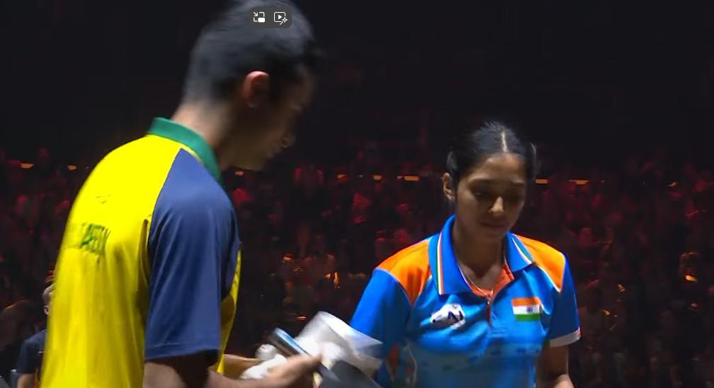 不会吧!莎头组合第一局居然输了! 第一局 看的出孙颖莎和王楚钦太久没配混双了, 配合有些生疏, 最后11:13输了。 第二局 莎头在上一局已经磨合差不多了, 这一局是猎杀时刻, 果然4:1开局, 11:4拿下 两人打开手了, 印度组合没有任何机会了! 我猜是3:1赢!